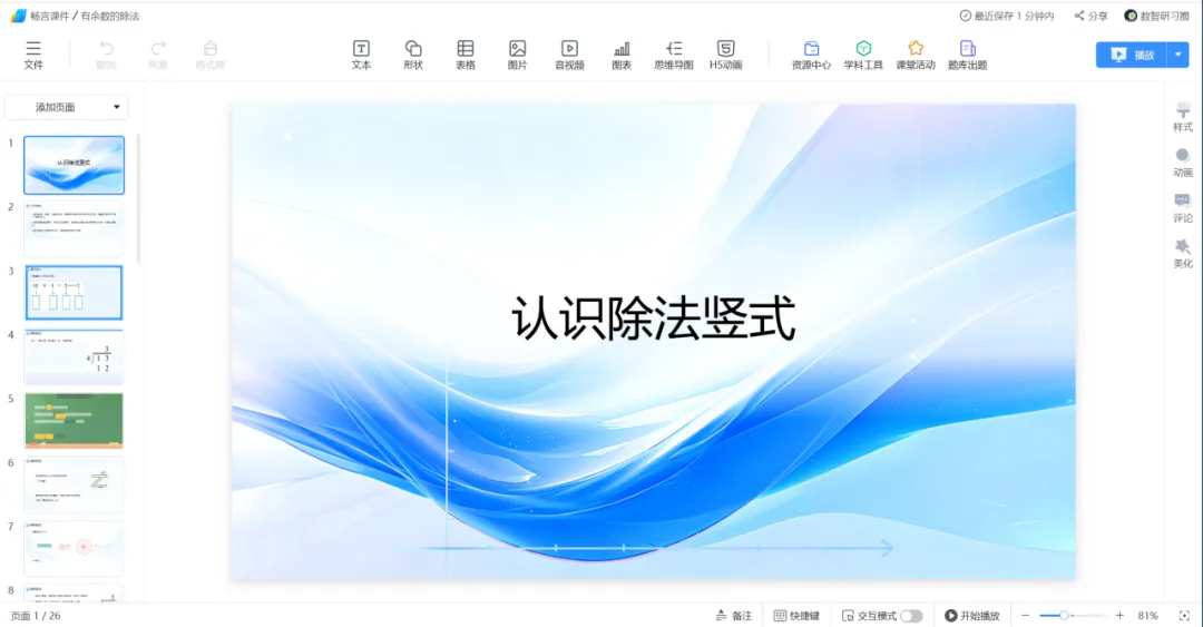 课件自带教学环节、互动设计,还能智能美化排版,省去大量排版时间