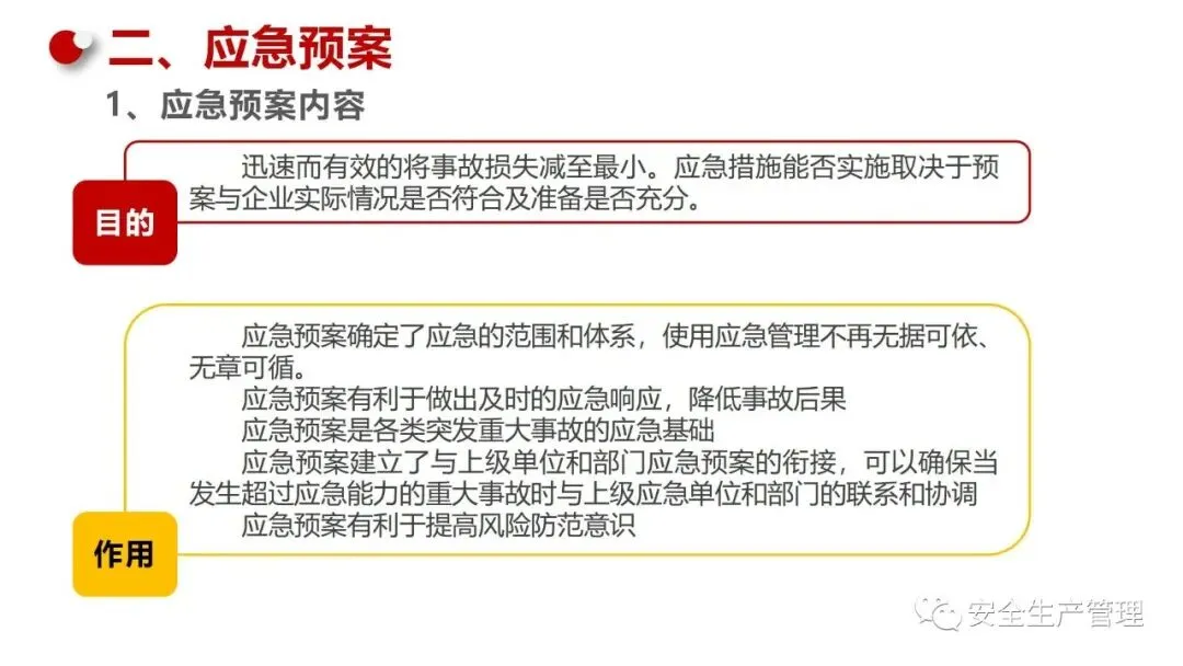 事后评估:突发事件结束后,进行事后评估,分析应急响应的效果和不足。心理辅导:为受影响的员工提供心理辅导,帮助其恢复正常状态。定期审查:定期审查和更新应急预案,确保其适应公司发展和外部环境的变化。持续改进:根据演练和实际应急情况,持续改进预案内容。文档化:将应急预案文档化,确保所有相关人员能够随时查阅。分发与培训:将预案分发给所有员工,并进行相关培训,确保其了解预案内容。公司应急预案体系的建立是一个系统化的过程,需要全员参与和持续改进。通过明确目标、风险评估、资源准备、演练和更新维护,可以有效提升公司在突发事件中的应对能力,保障员工安全和公司正常运营。