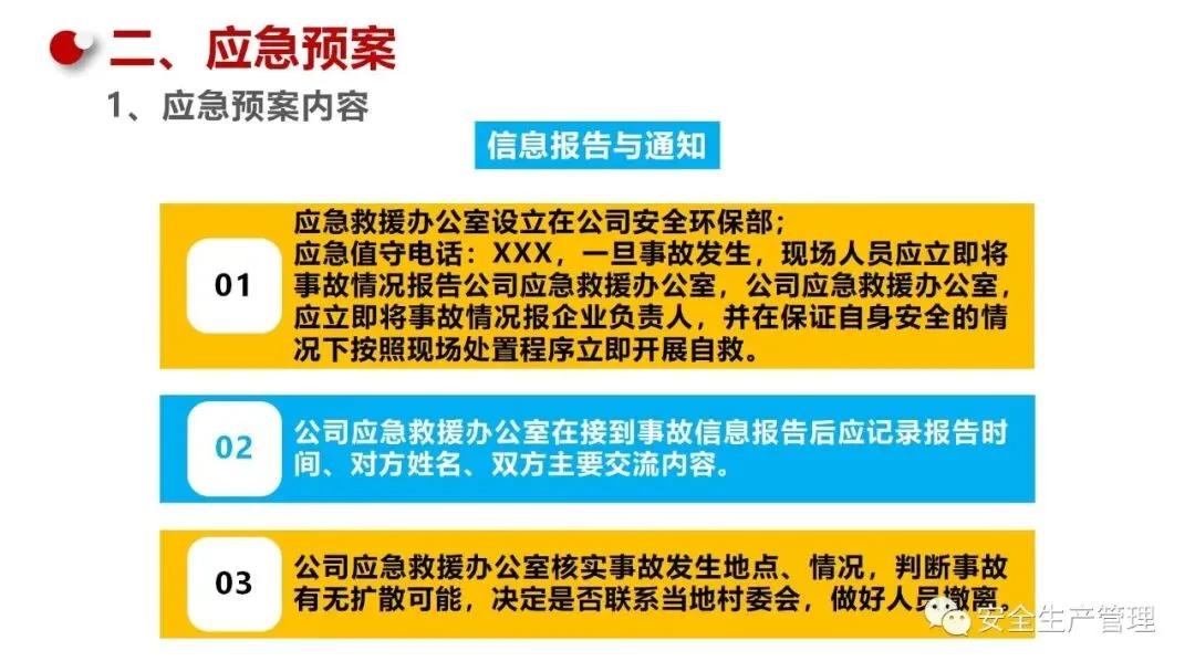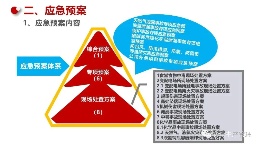 现场处置方案:针对特定场所或设备制定详细的应急处置方案。