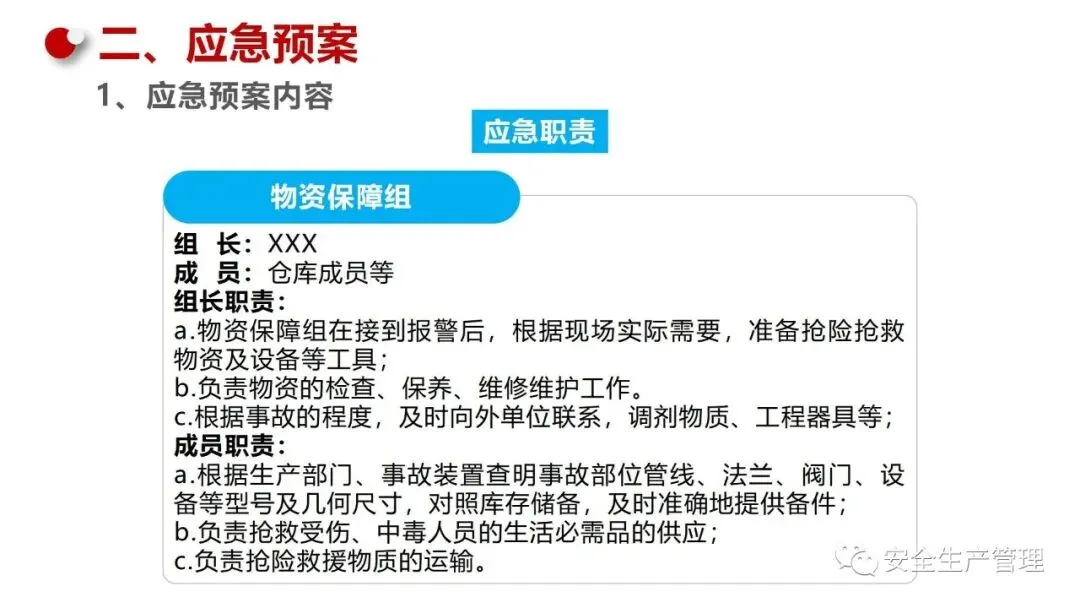 物资储备:准备必要的应急物资,如灭火器、急救包、应急照明、通讯设备等。