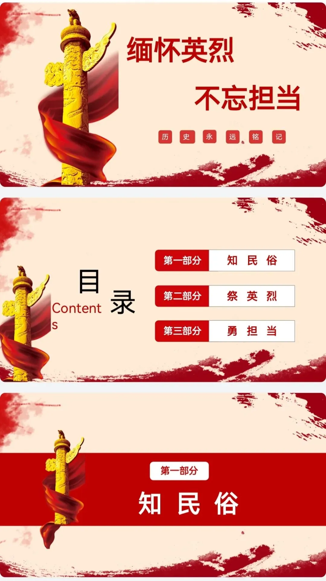 >【通用】PPT清明节主题班会《缅怀英烈不忘担当》