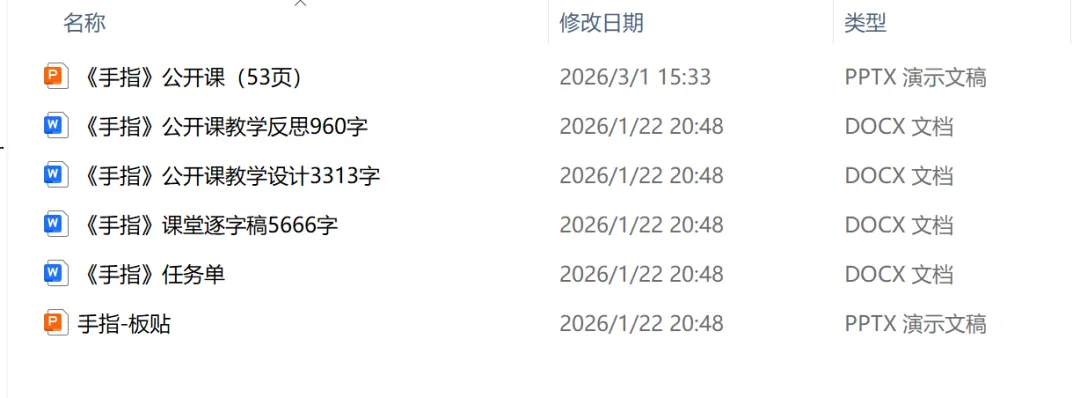 五下新版《手指》:53页公开课PPT + 教学设计+逐字稿+板贴