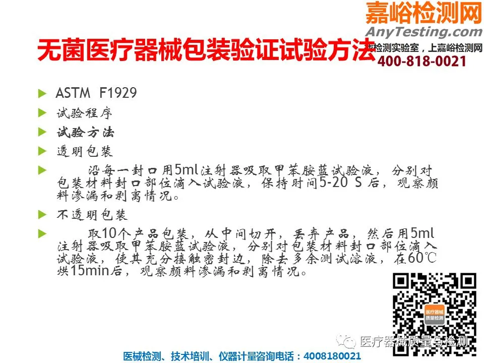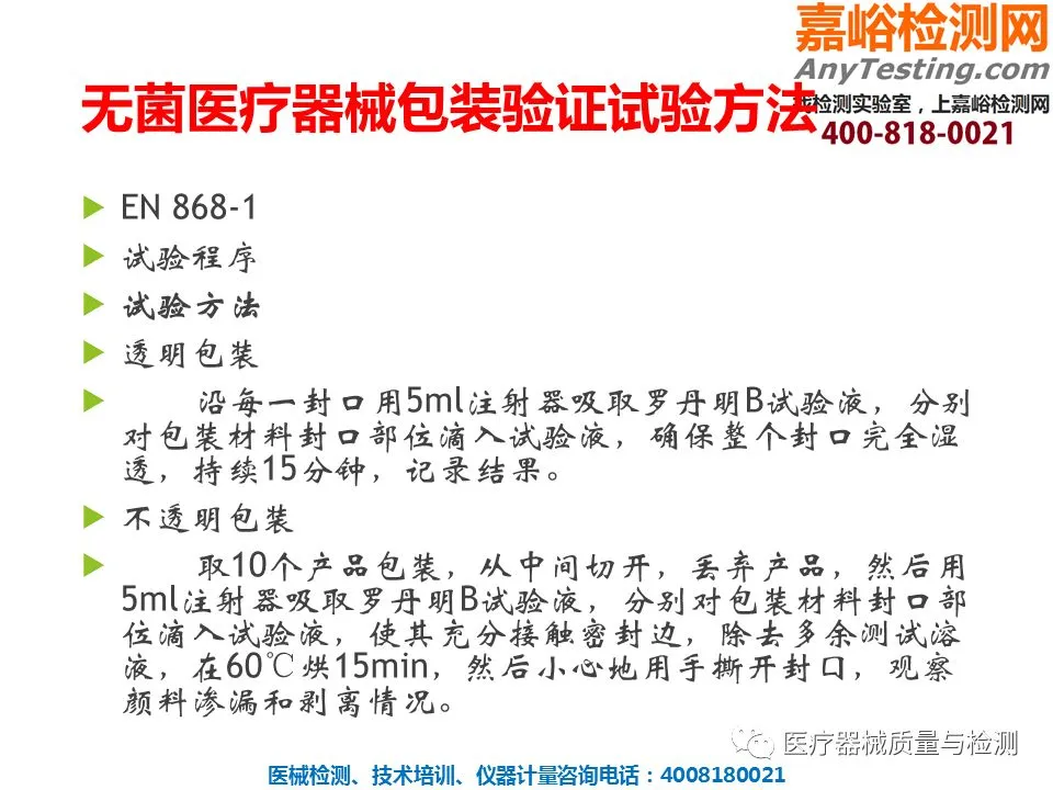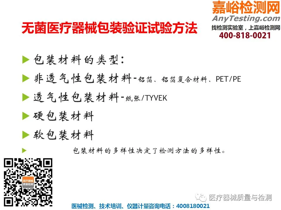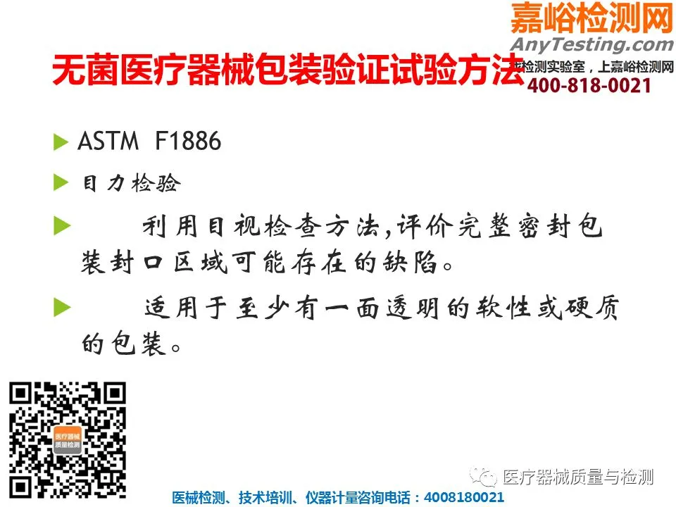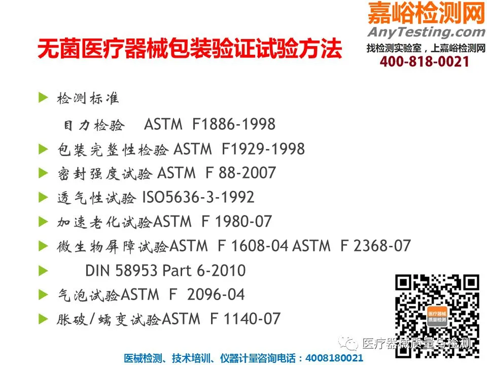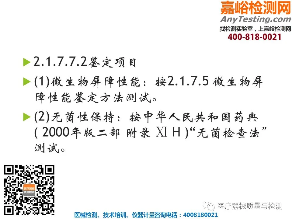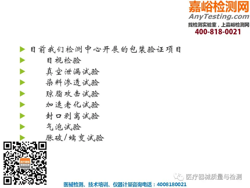 医疗器械检验服务项目:
