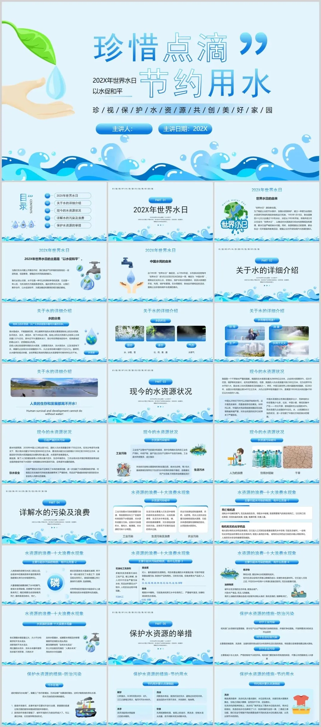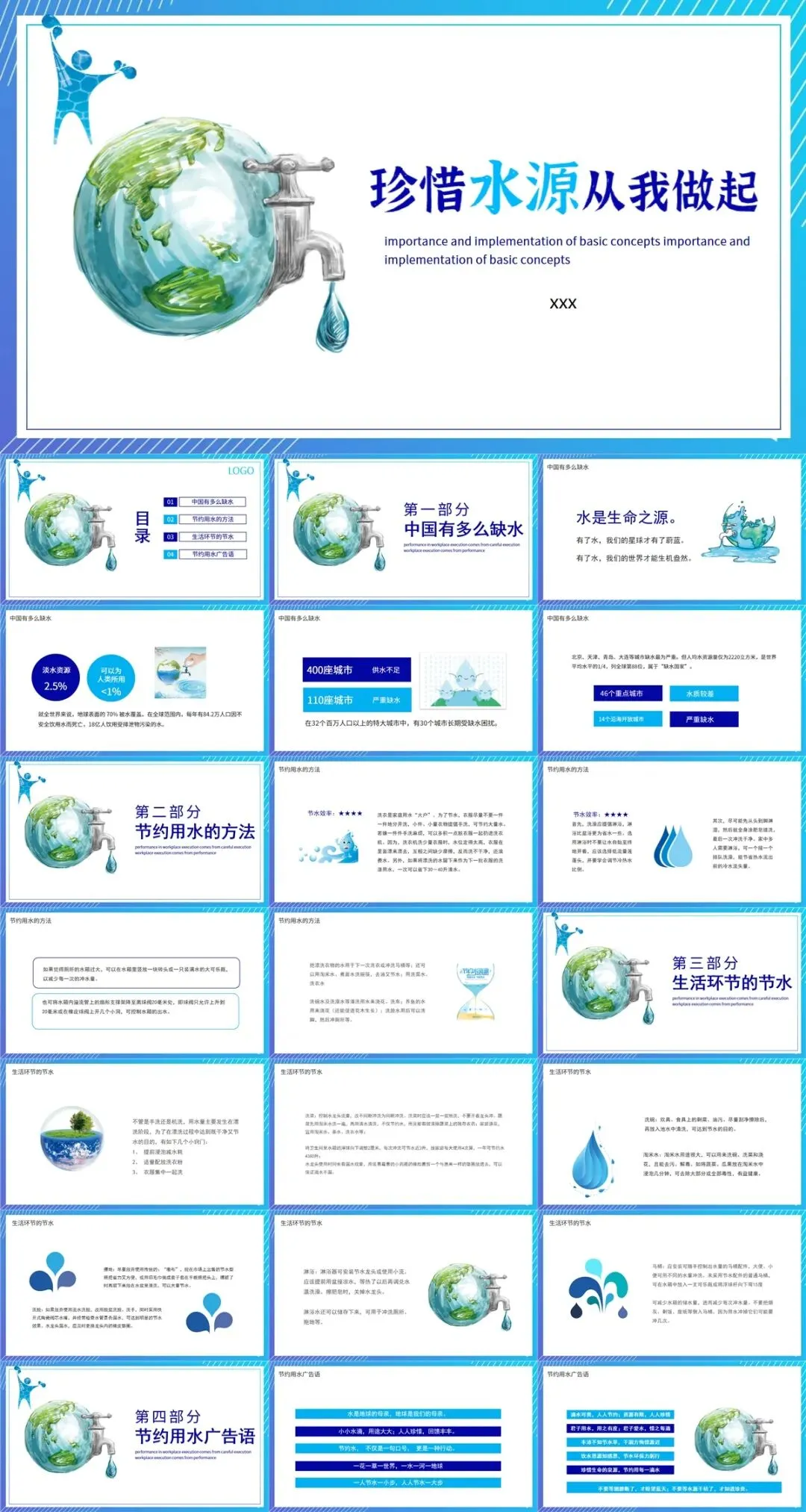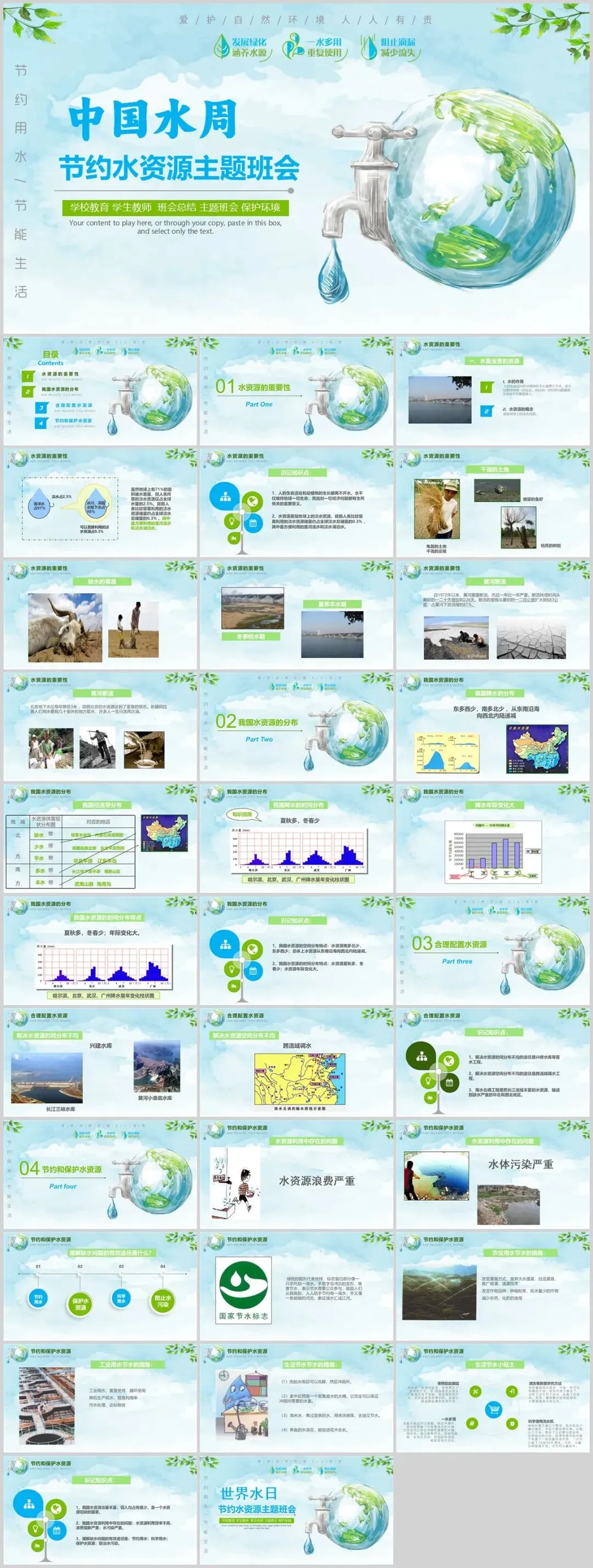 九套世界水日暨中国水周主题PPT,保护水资源,做水周活动真棒!