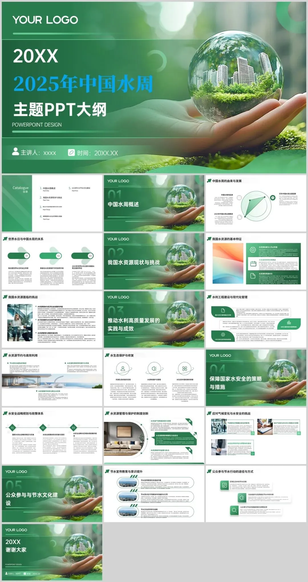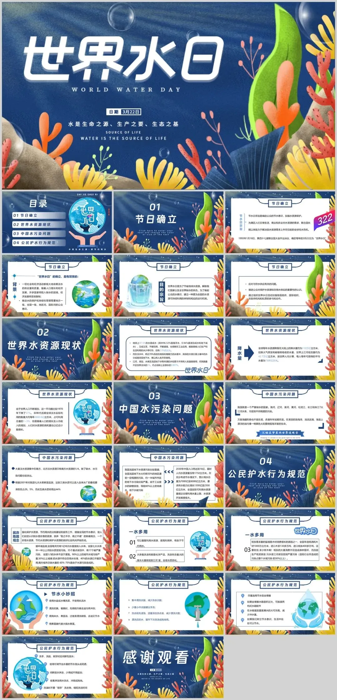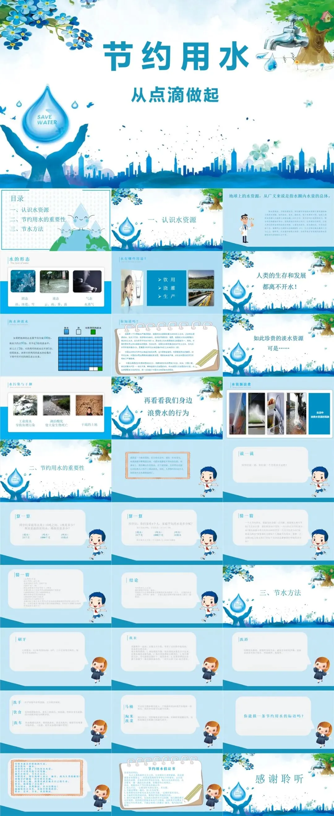 九套世界水日暨中国水周主题PPT,保护水资源,做水周活动真棒!