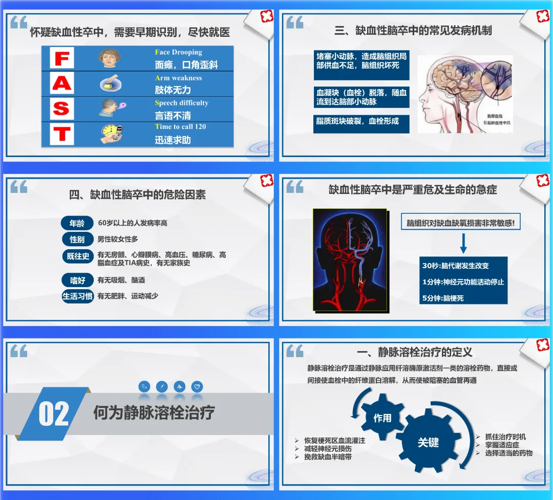 第一部分,何为缺血性脑卒中:阐明疾病定义、病理生理基础及“时间窗”概念。重点在于建立“急性期救治紧迫性”的认知,为后续溶栓治疗的必要性做铺垫。