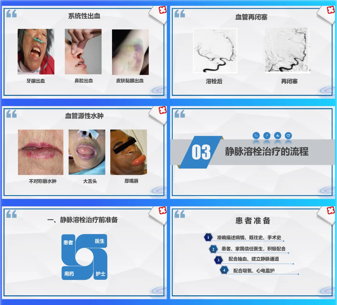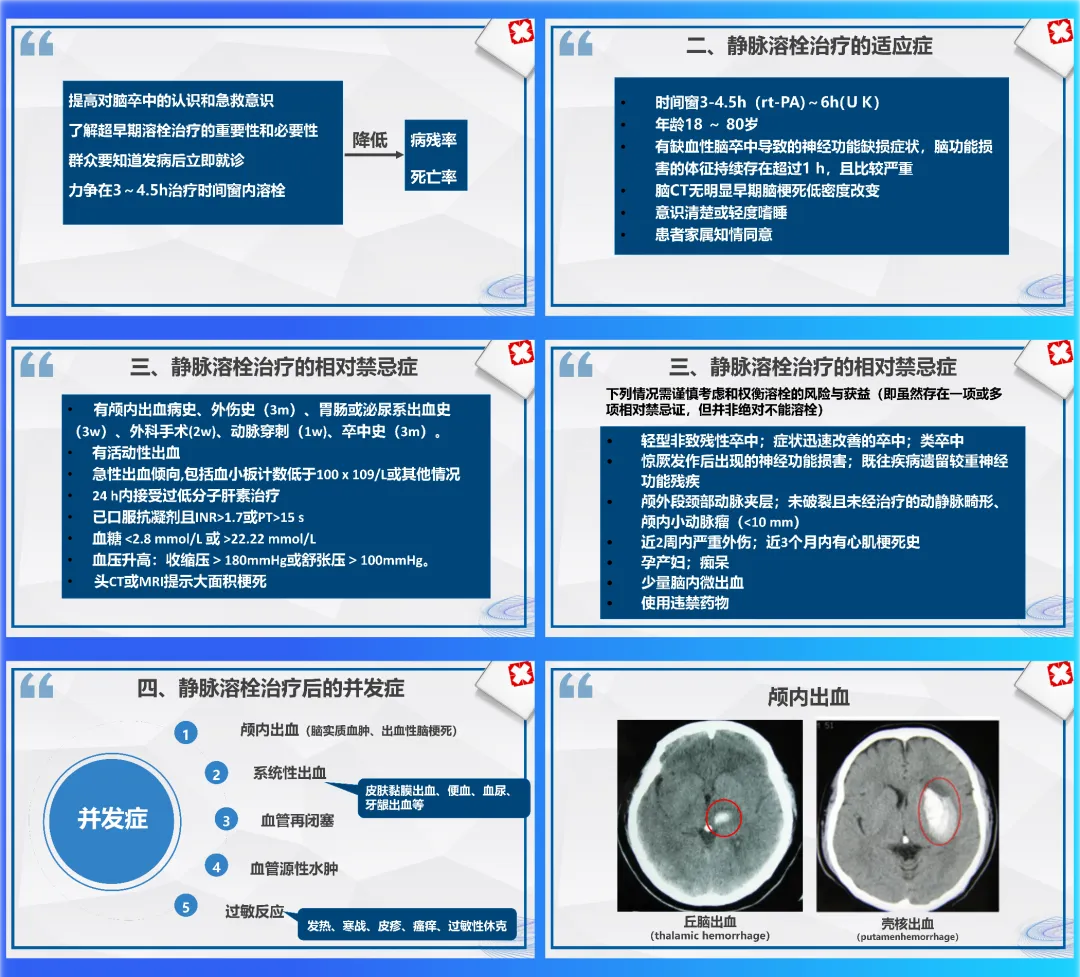 第二部分,何为静脉溶栓治疗:界定静脉溶栓的概念,核心是强调治疗的“黄金时间窗”(如3-4.5小时内)。详细列出适应症与禁忌症,这是筛选合适患者、确保治疗安全与有效的法律与医学边界。