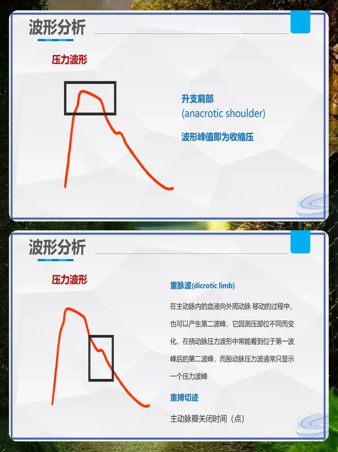 【第三部分:波形分析与影响因素】在临床观察中,波形的判读至关重要。一个标准的动脉压力波形由收缩期和舒张期组成。收缩期反映了左心室的收缩,形成波形的上升支和峰值,也就是收缩压。而在下降支上,我们通常能看到一个重搏切迹,它反映了主动脉瓣的关闭。