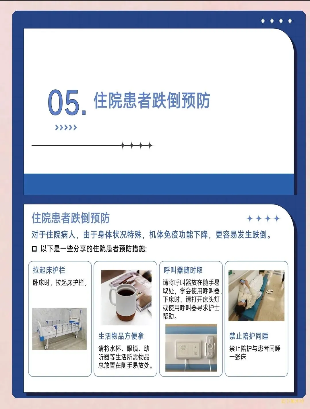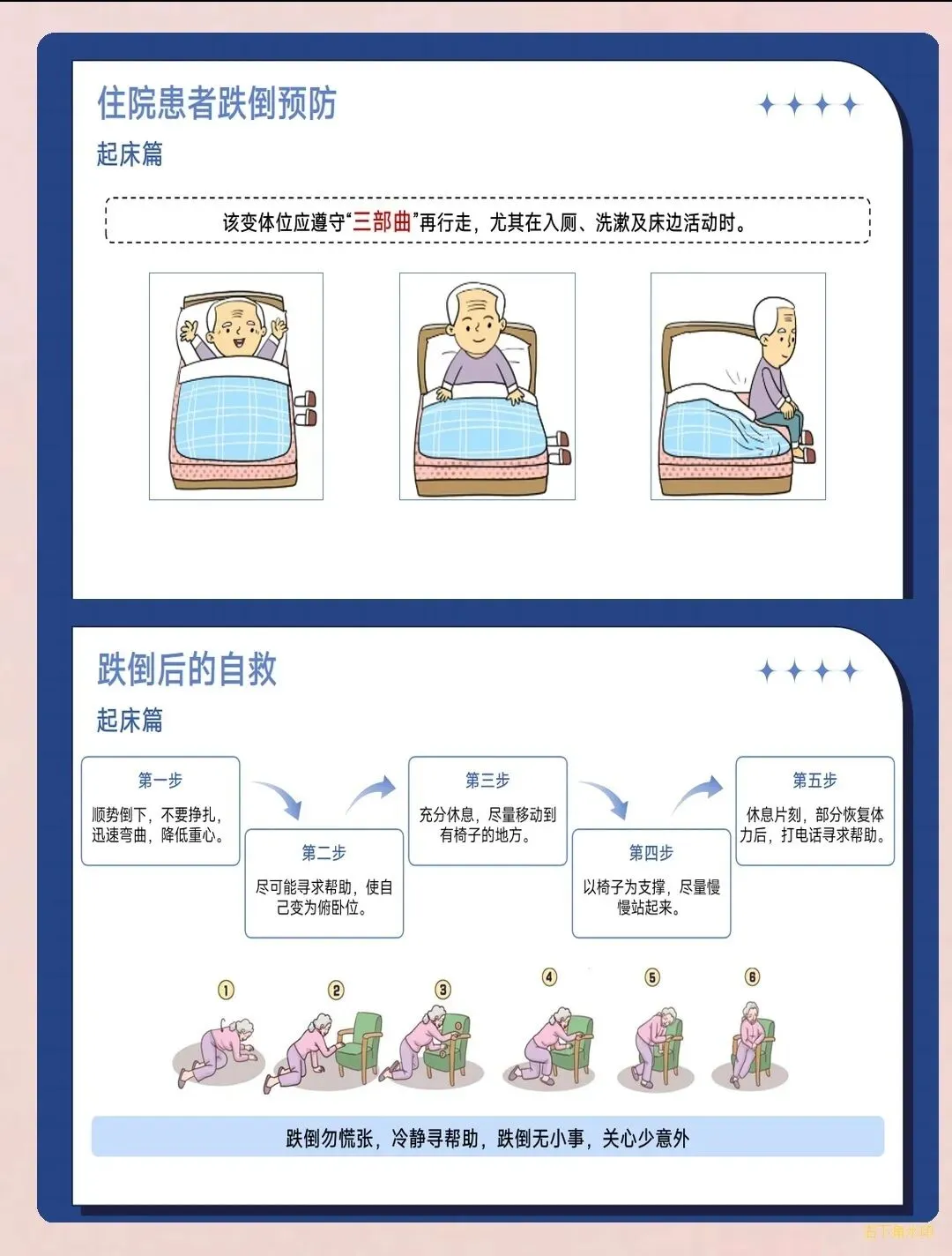 术后患者,特别是骨科手术、腹部手术后的患者,由于疼痛、活动受限、体位改变等因素,跌倒风险显著增加。很多护士在术后早期比较关注患者的疼痛管理,而忽略了跌倒预防,这是导致术后跌倒的重要原因。