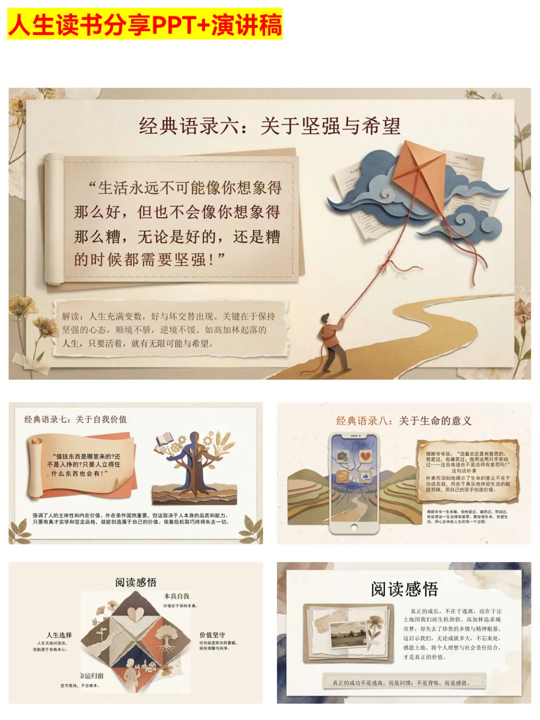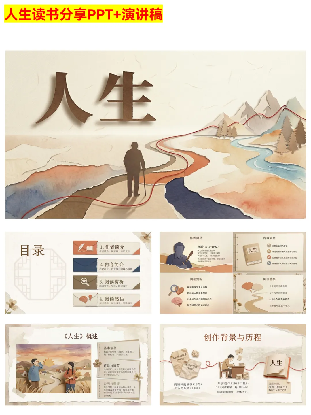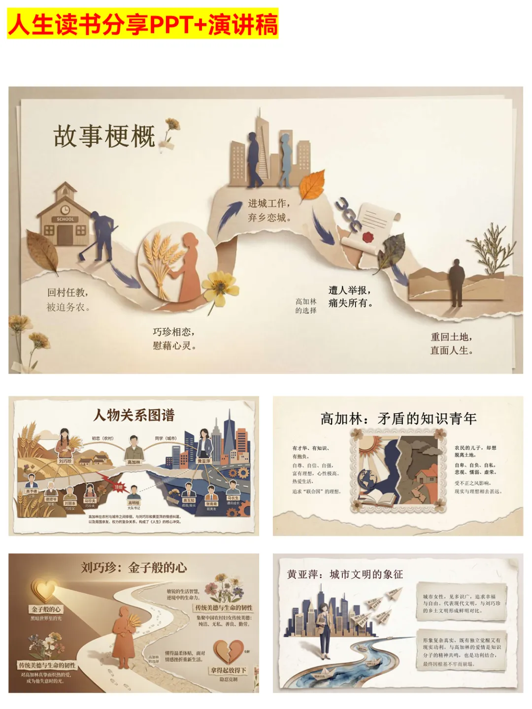 专为文学爱好者准备的《人生》读书分享PPT!聚焦作品的现实主义风格、细腻心理描写和生动语言艺术,深入探讨理想与现实、故土与奋斗的主题。包含故事脉络、人物关系图谱和经典语录解读,不管是课堂分享还是读书交流会,都能帮你精准传达作品精髓,轻松引发共鸣。 #人生读书分享 #文学PPT #经典名著解读 #阅读感悟 #路遥 #高加林命运 #文学交流 #读书干货 #名著分享 #人生主题