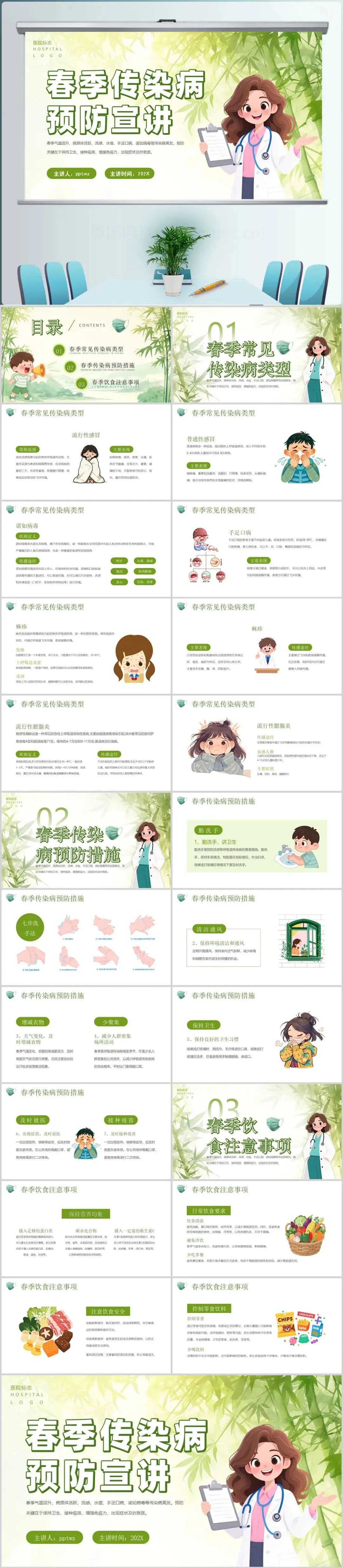 【健康ppt】绿色小清新风春季传染病预防宣传介绍课件