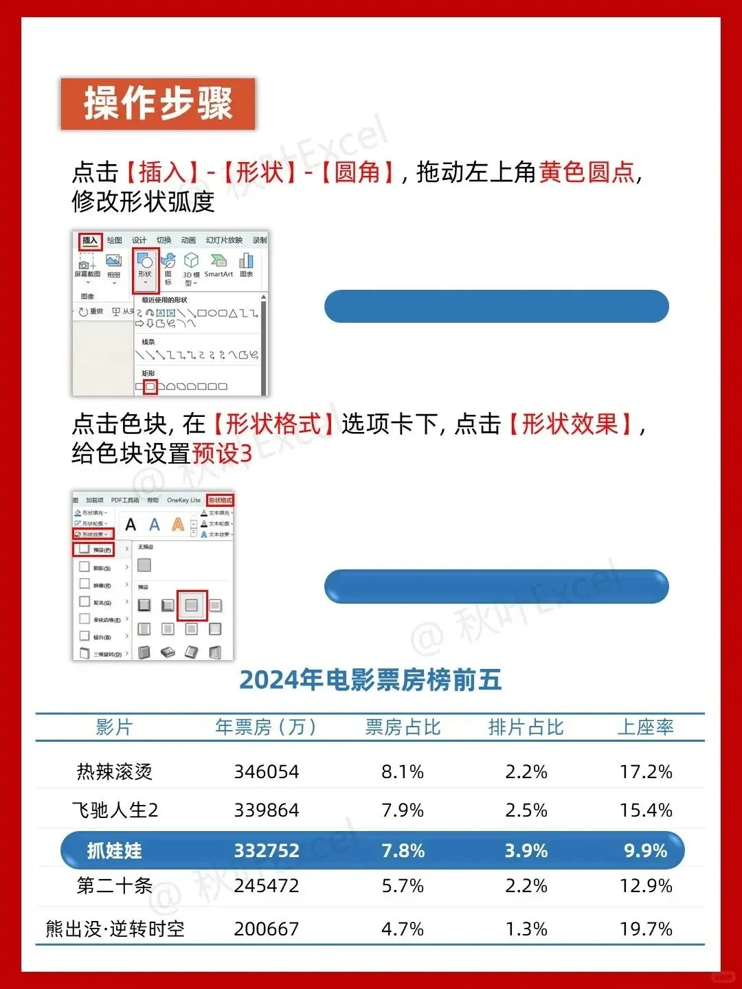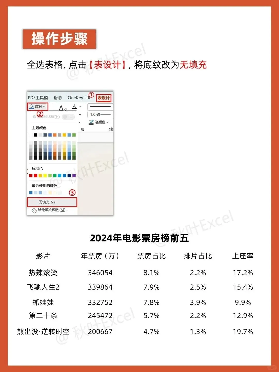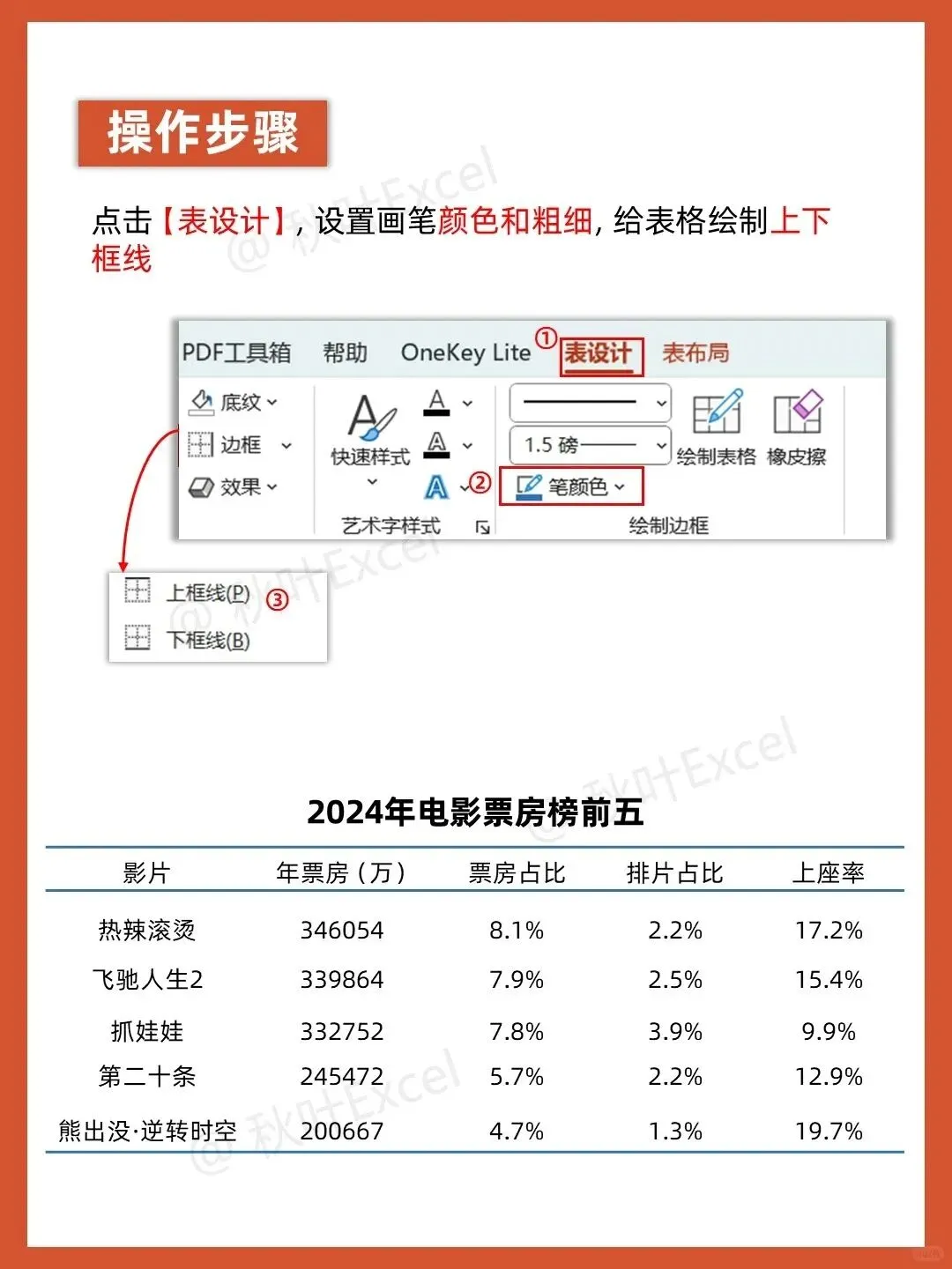 做PPT时,你是不是也习惯直接插入表格,然后看着那些灰底黑框、密密麻麻的格子发愁?默认的表格样式不仅缺乏美感,还让数据显得杂乱无章。其实,只需几个简单的设置,就能让表格瞬间变得高级又清晰。今天,我们就以一份电影票房榜为例,手把手教你用5步给表格“换脸”。