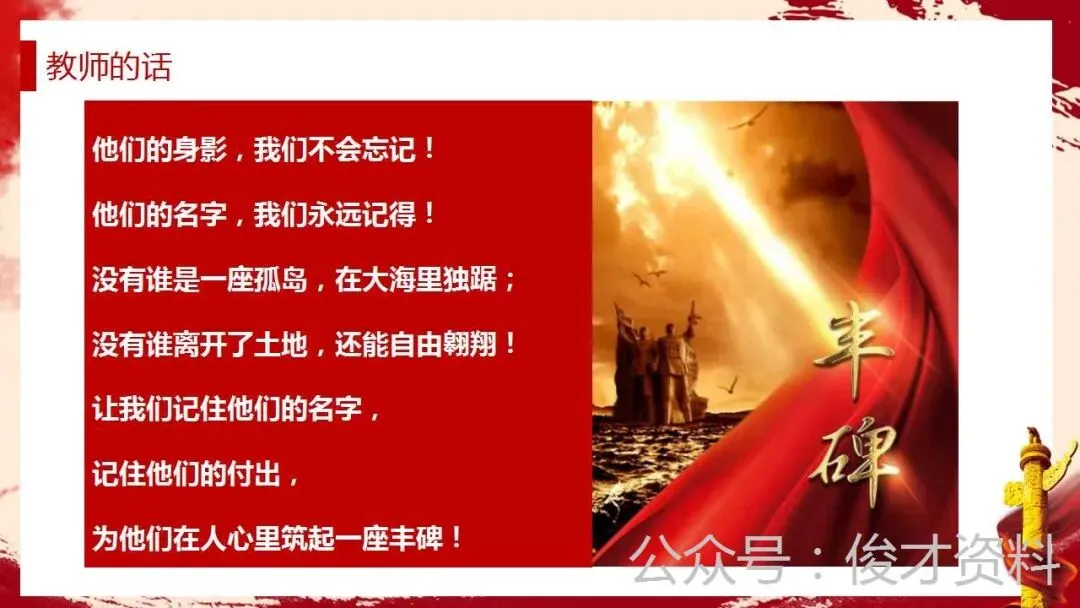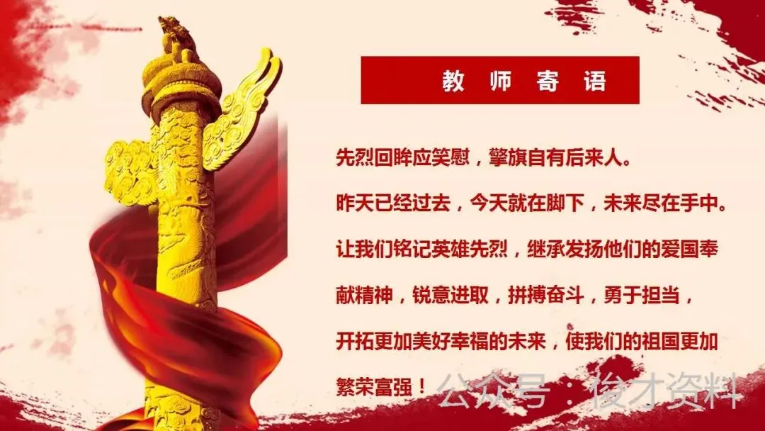 【通用】清明节主题班会ppt:缅怀英烈,不忘担当.含教学设计、视频
