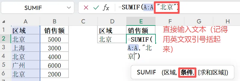 题目:求北京区域销售额总额。
