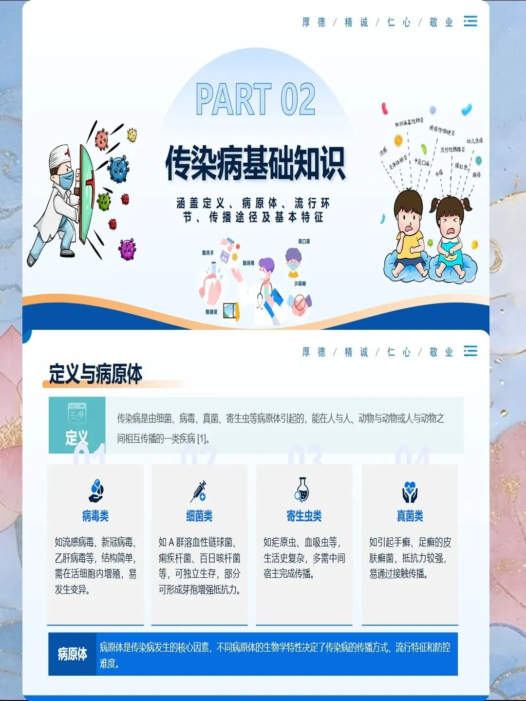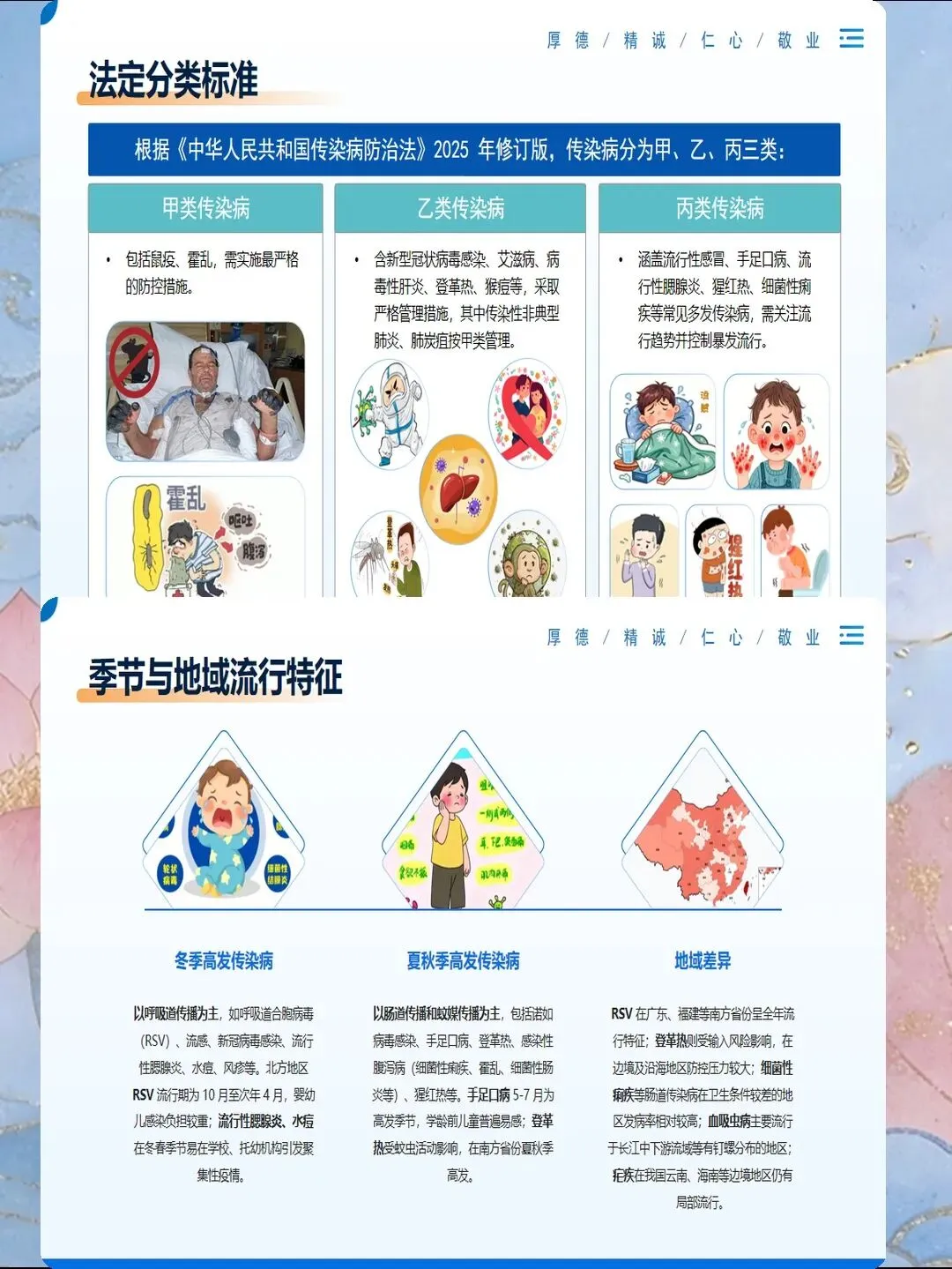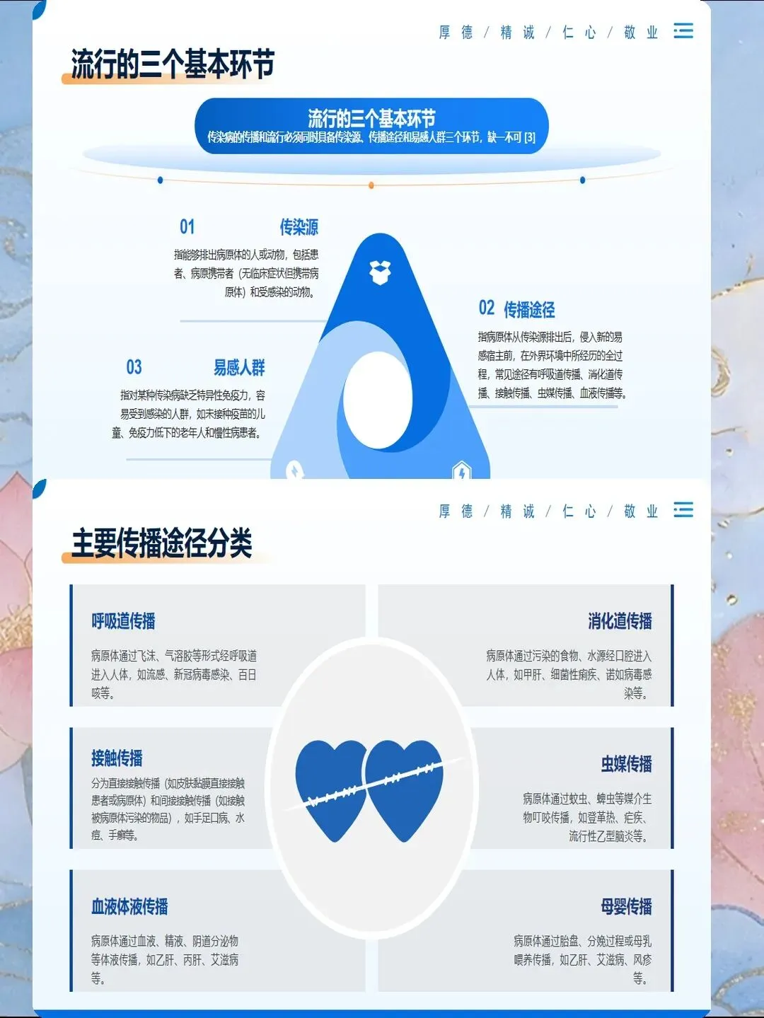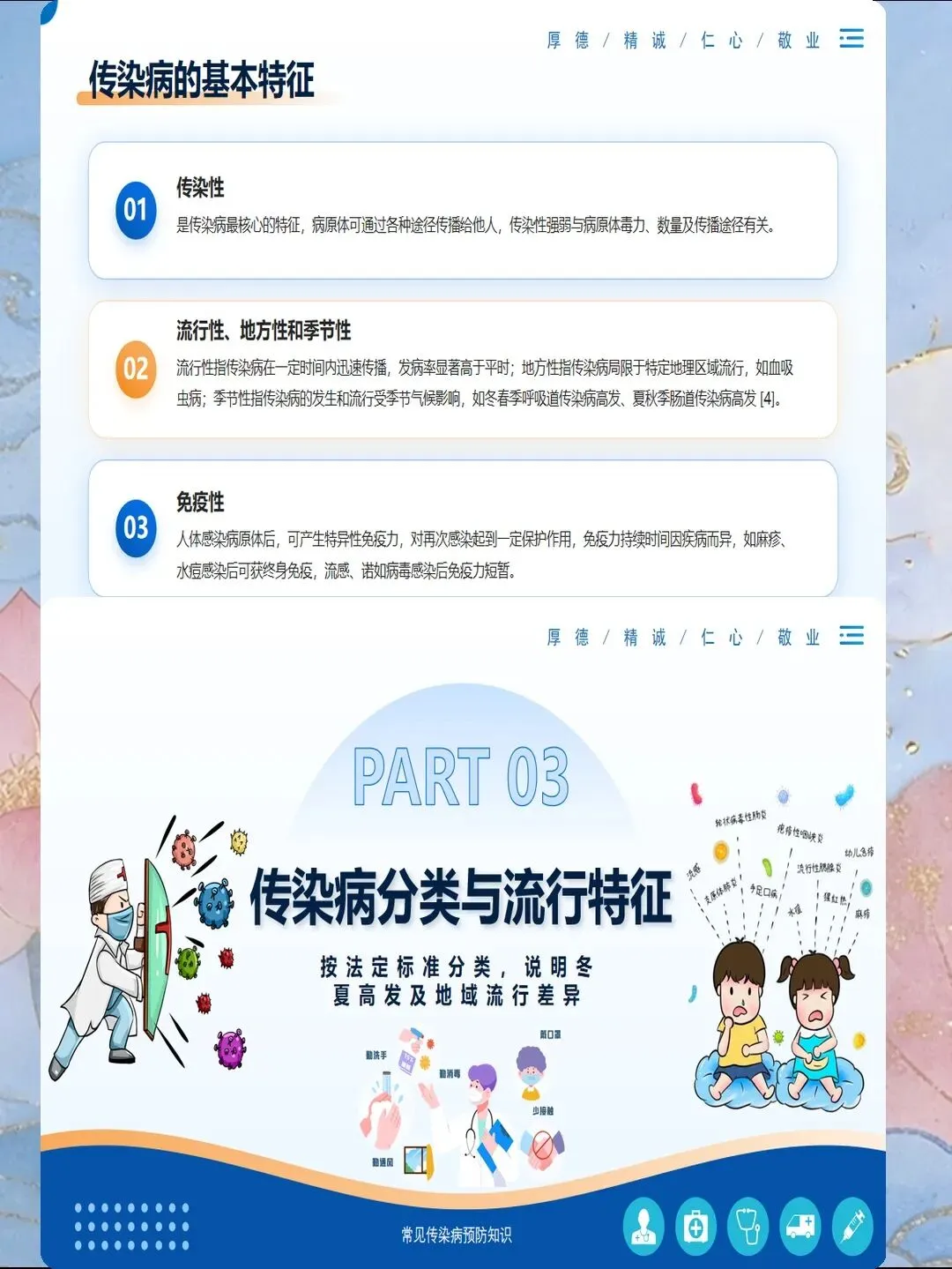传染病预防是医院感染控制的核心内容,也是公共卫生的重要议题。掌握常见传染病的传播途径、临床表现和预防措施,能够有效降低感染风险,保障患者和医务人员安全。护理人员需要系统了解各类传染病的预防知识,在实际工作中落实标准预防和隔离措施,切断传播途径。