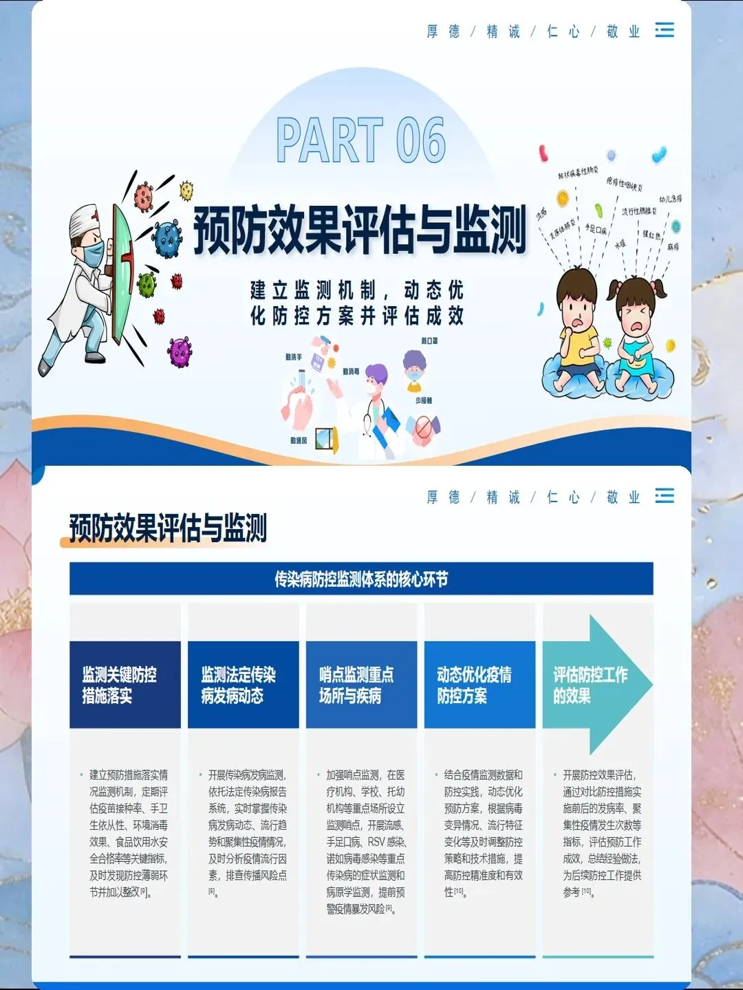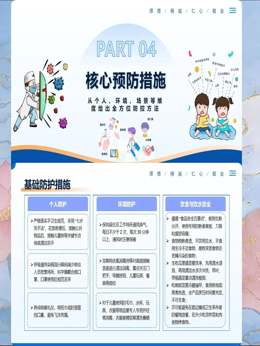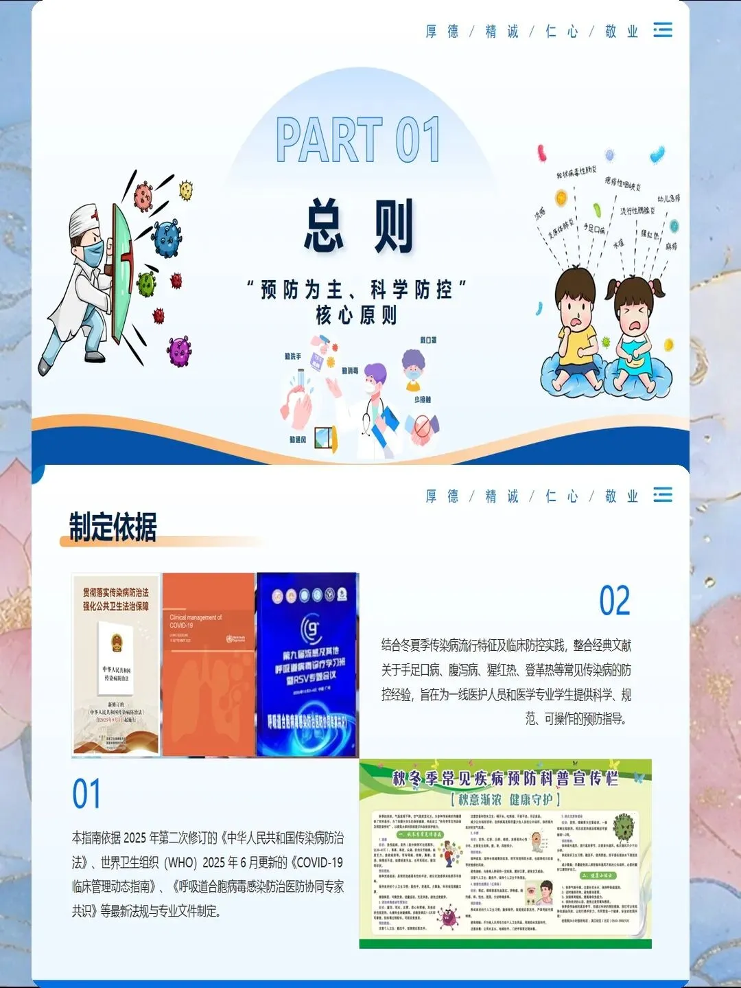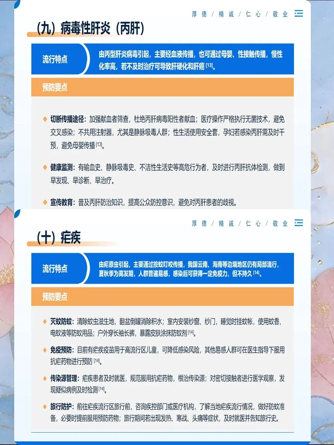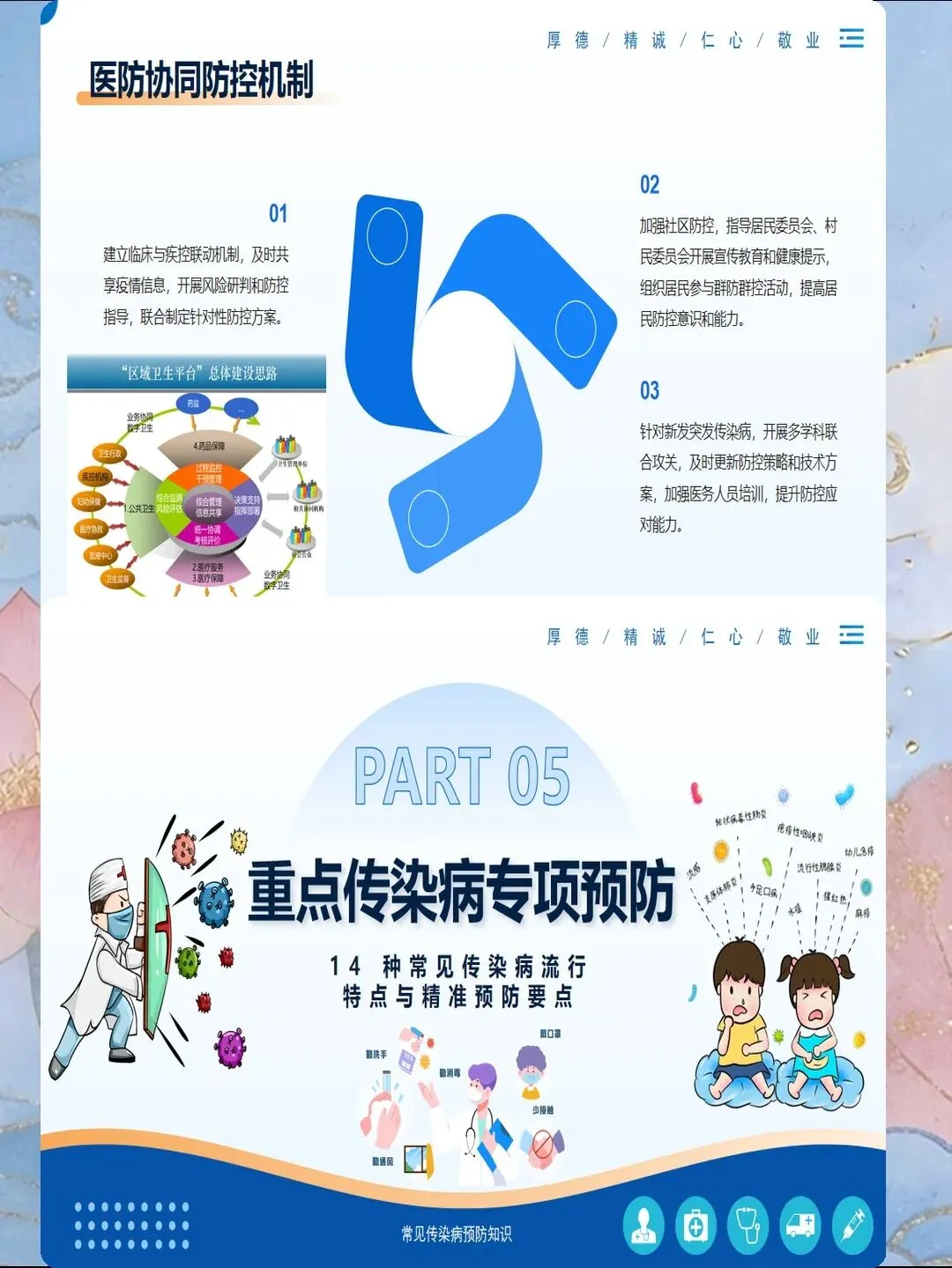 传染病预防是医院感染控制的核心内容,也是公共卫生的重要议题。掌握常见传染病的传播途径、临床表现和预防措施,能够有效降低感染风险,保障患者和医务人员安全。护理人员需要系统了解各类传染病的预防知识,在实际工作中落实标准预防和隔离措施,切断传播途径。