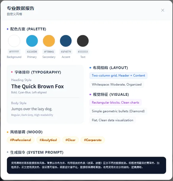 - 每一页都独一无二:它不是在“填空”,而是在“创作”。它会根据你的文字长短、逻辑深度,实时计算出最适合的视觉布局。