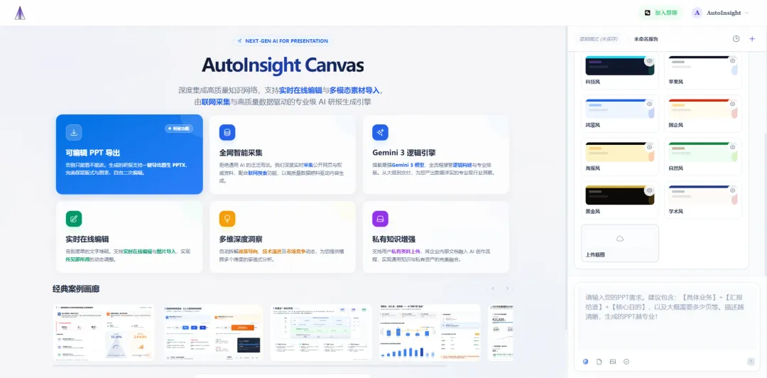 今天,我必须要把AutoInsight Canvas推到你面前。它既不是在“套模板”,也不是在“吐图片”,它是基于全新 Canvas 原生引擎的生产力革命:✅原生可编辑:生成的不是图片,是每一行字、每一个图标都能改的 .pptx 格式。✅原生设计感:拒绝死板模板填充,每一页布局都根据你的内容量实时计算,视觉直接对标顶级分析师。✅配色黑科技:审美不够?传张大厂海报截图,AI 瞬间克隆全套配色风格。这,才是 2026 年职场人该用的 AI PPT。