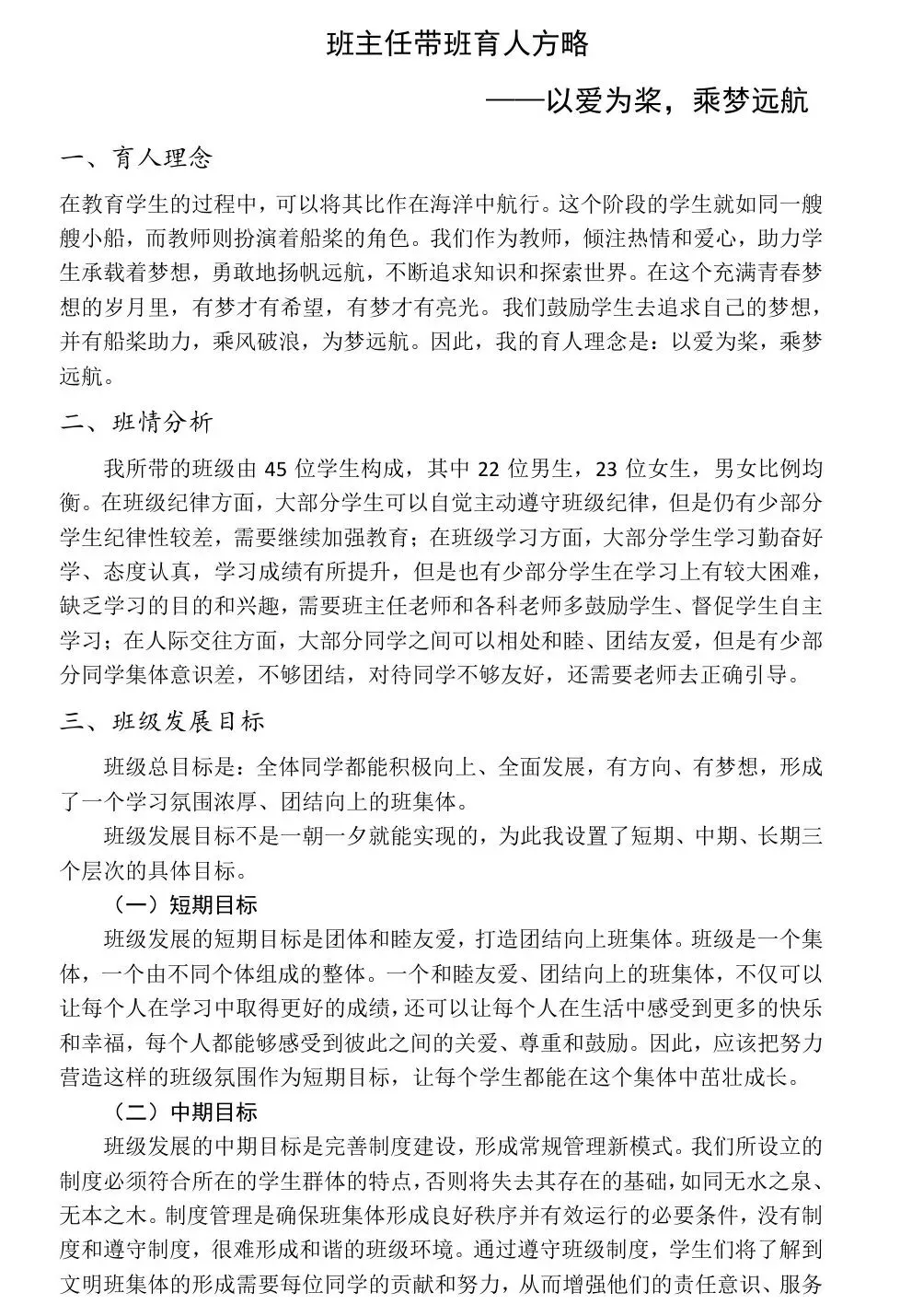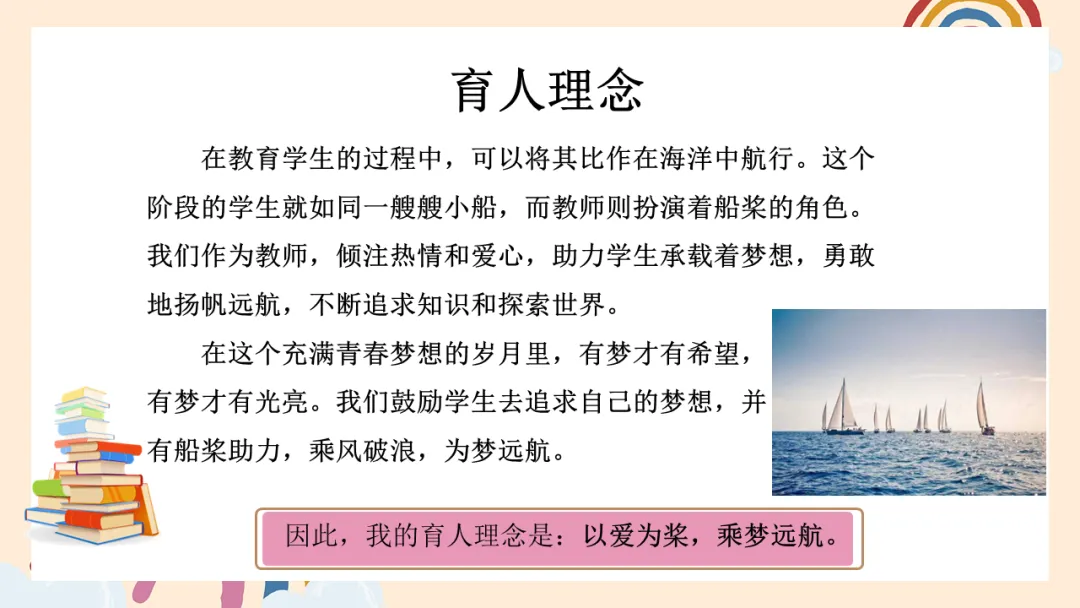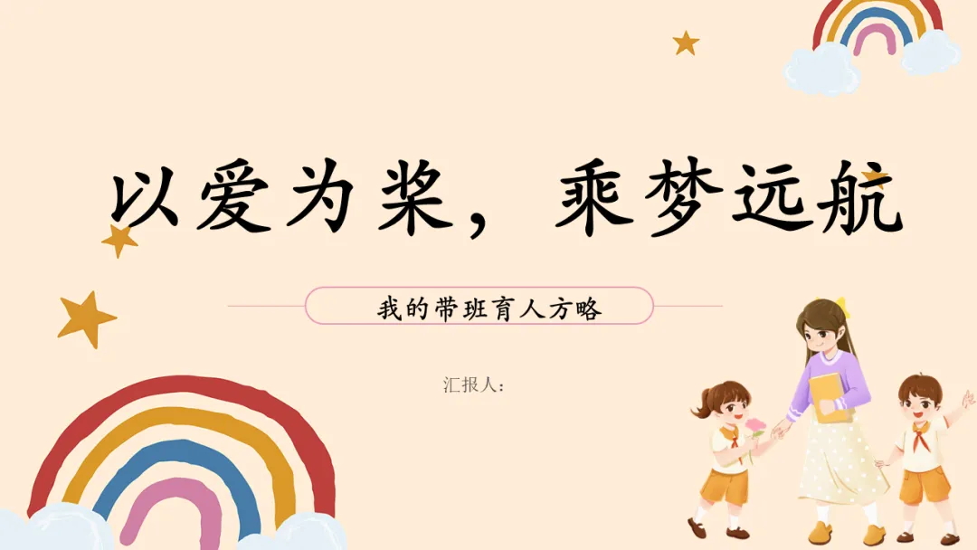 今天,我很荣幸能在这里与大家分享我的带班育人方略,主题是——《以爱为桨,乘梦远航》。