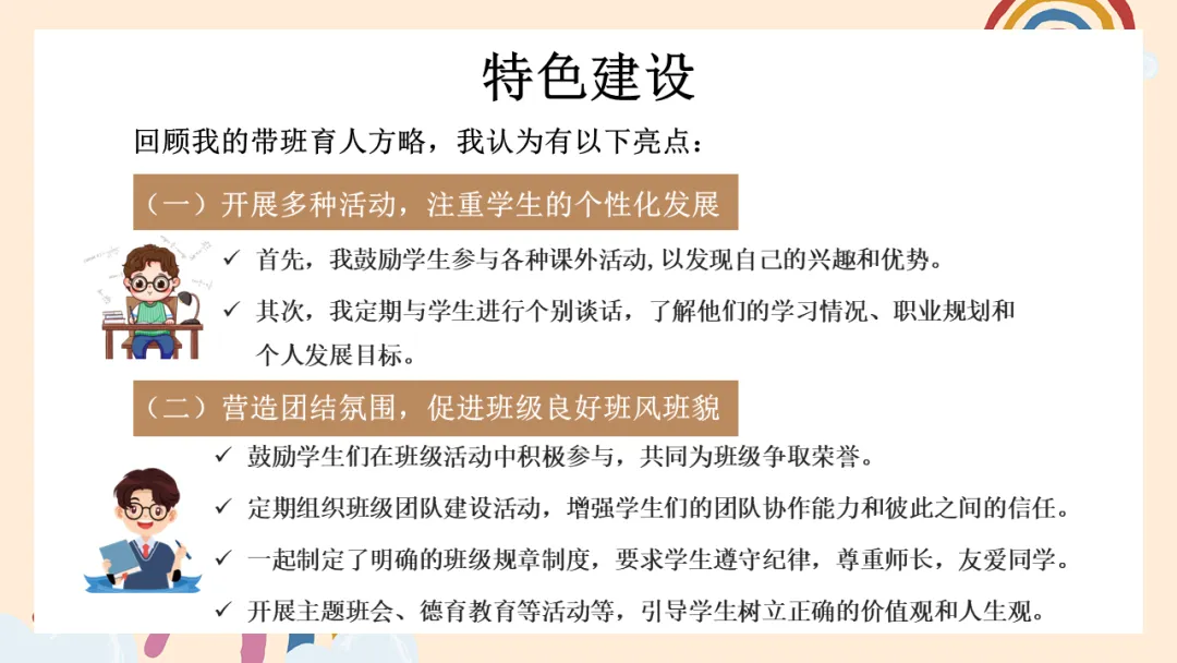 当然,爱不等于放纵。在班级管理中,我也非常重视规则的建立。我们班有明确的规章制度,奖罚分明。孩子们知道,做对了会得到肯定,做错了也要承担责任。但在严格之外,我更注重倾听和沟通。只有在尊重和理解的基础上,规则才能真正内化为孩子们的自觉行为。