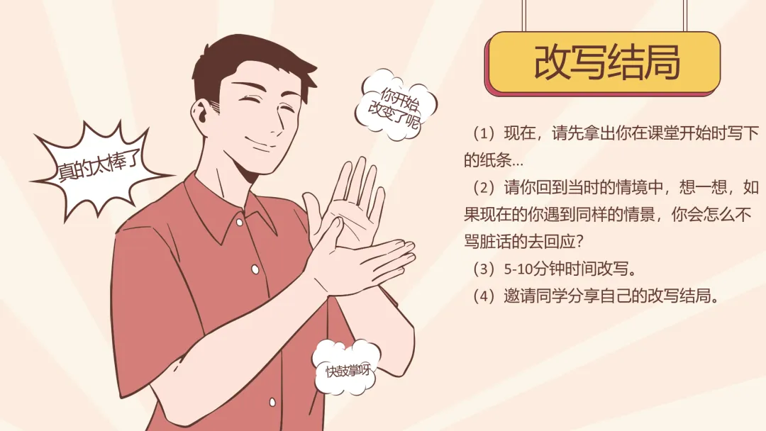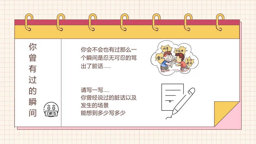 还记得我们课堂开始时写下的那张纸条吗?上面是你曾经说过的脏话和当时的场景。