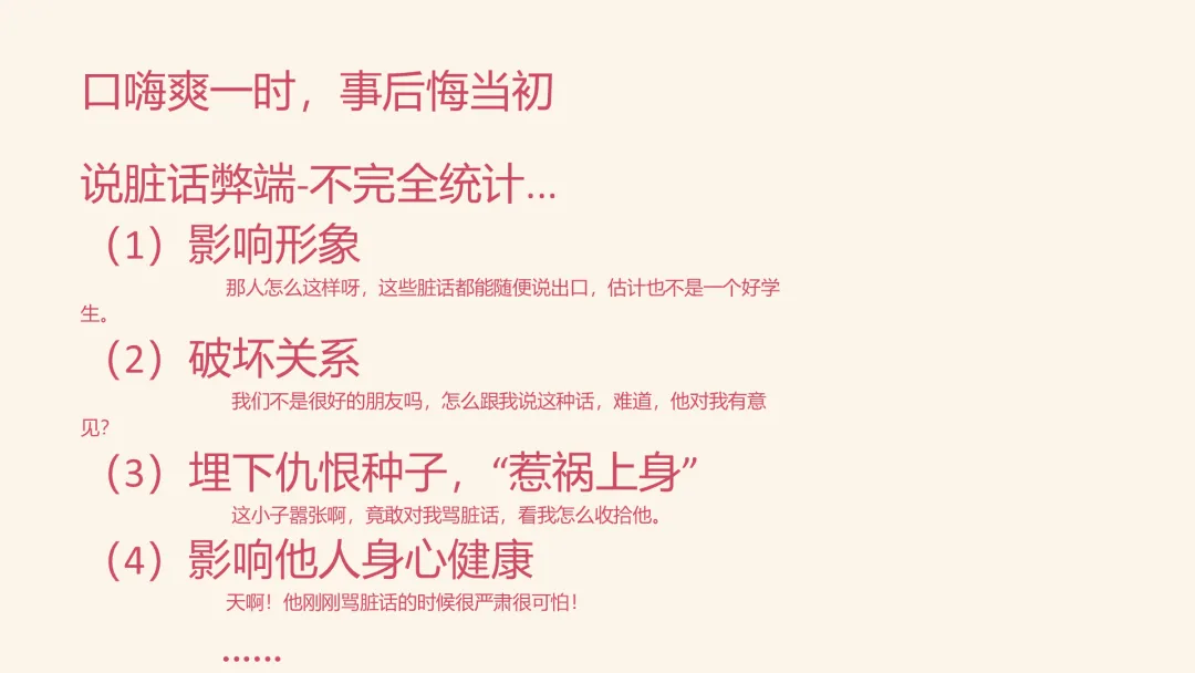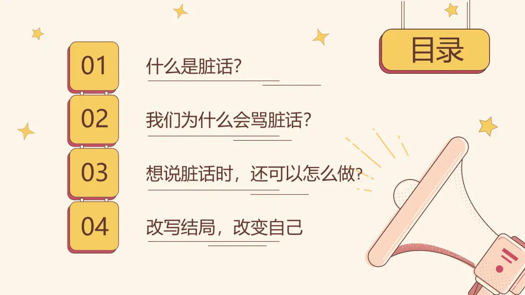 今天这节班会课,我们聊一个看似很小、却和我们每个人都息息相关的话题——脏话。