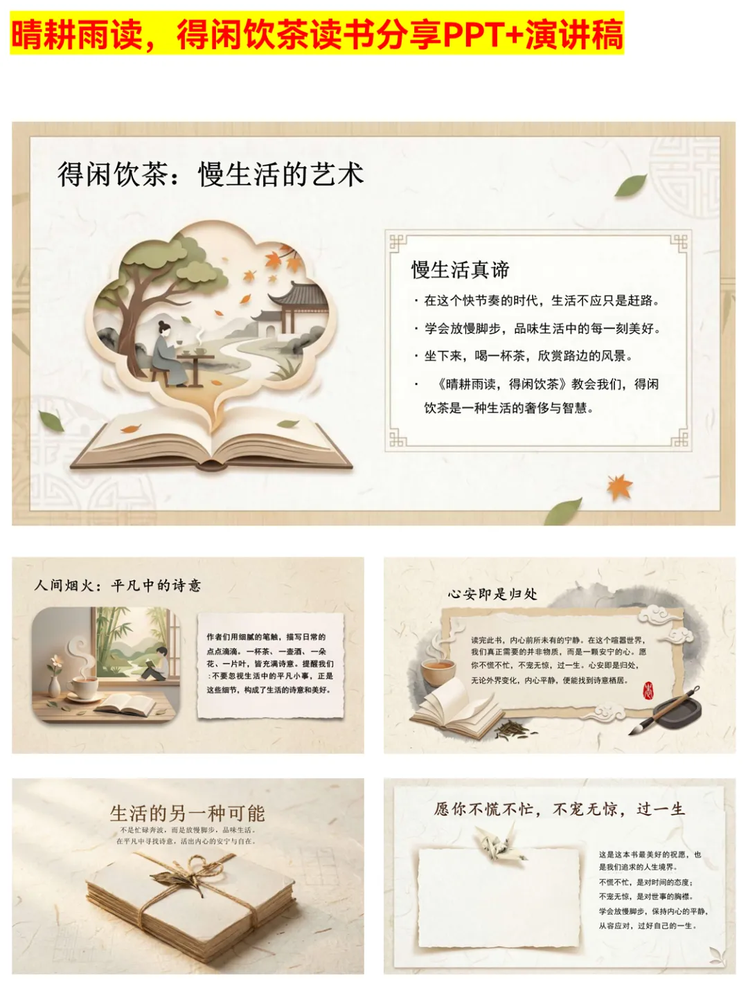 >慢生活美学!《晴耕雨读,得闲饮茶》PPT