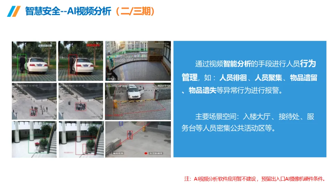 在基础设施方面,方案规划了信息基础设施、信息网络、安全防范、建筑设备设施等多类系统,涵盖综合管路、布线、机房工程、视频监控、智能照明、环境监测等具体内容,确保软硬件一体化交付与数据融合。同时明确了各系统的设计界面、布点原则及技术要求,保障系统互联互通与安全可控。