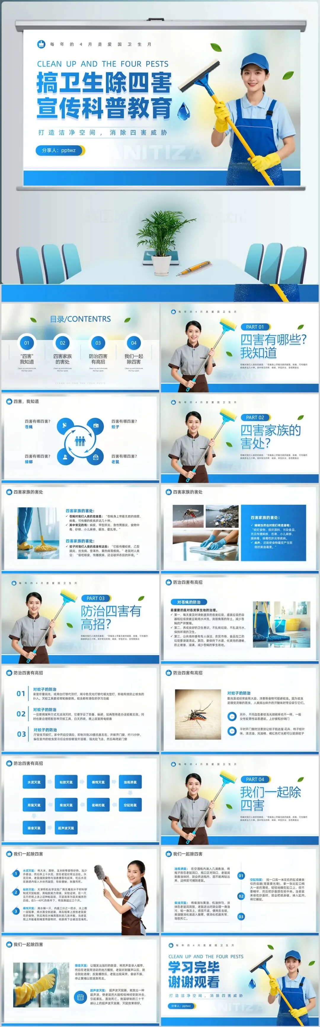 【卫生月PPT】2026蓝色简约风搞卫生除四害爱国卫生月介绍