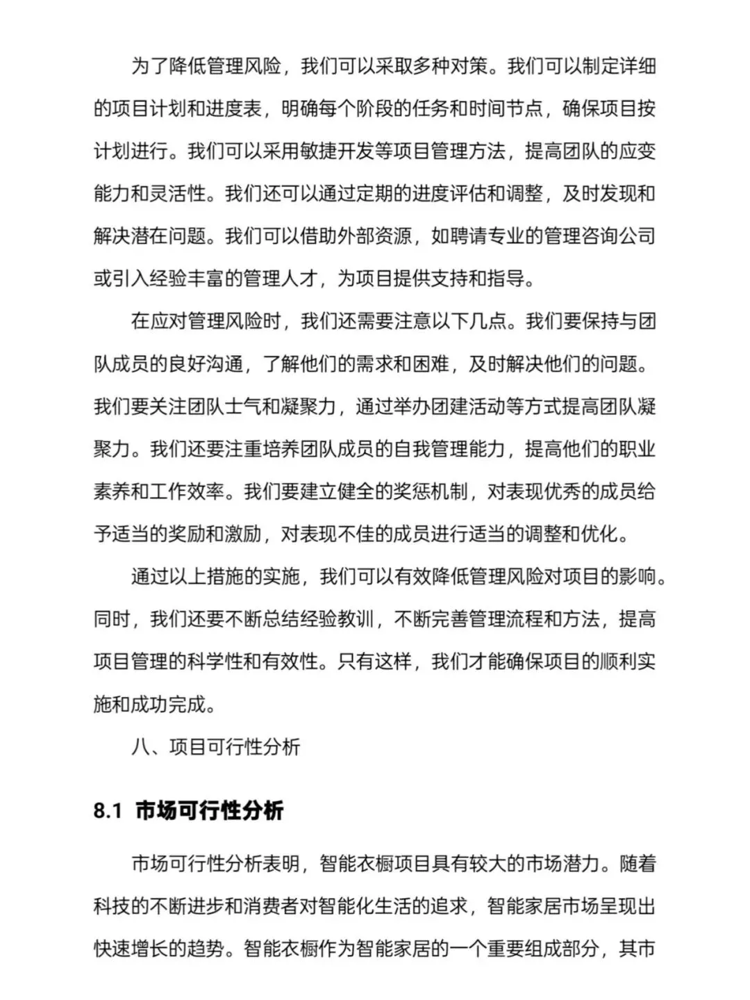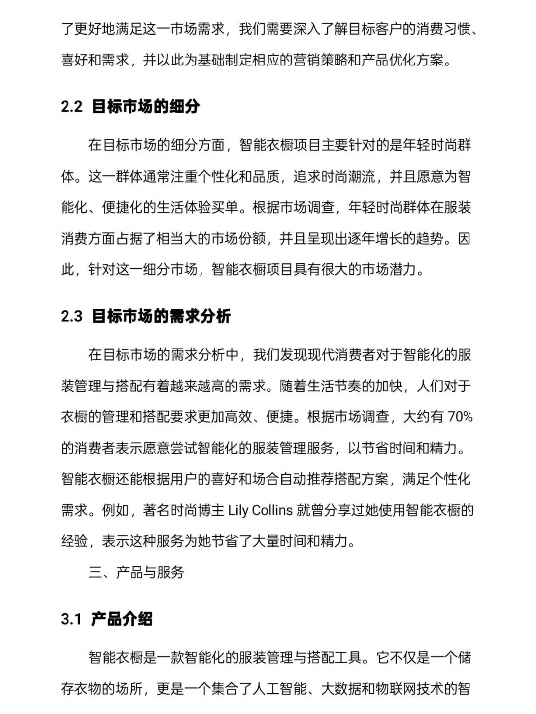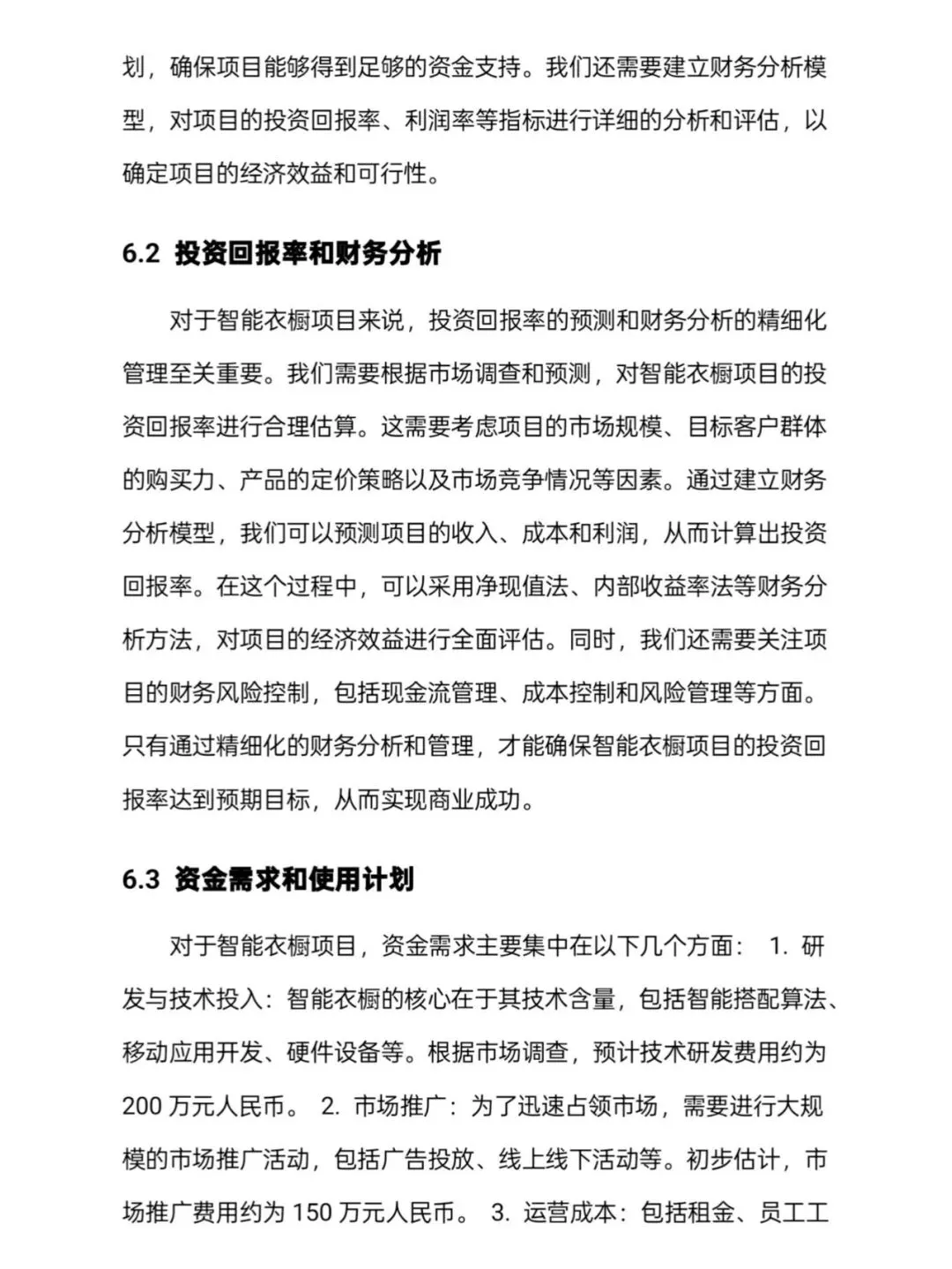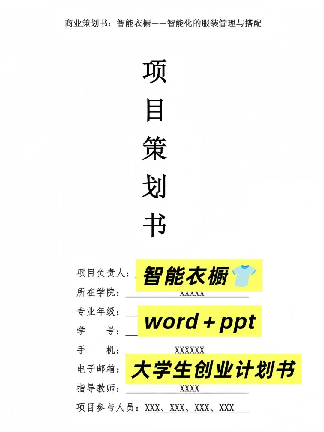 👔智能衣橱——智能化的服装管理与搭配项目旨在通过先进的科技手段,为用户提供更加便捷、个性化的服装管理与搭配服务。项目名称和标识充分体现了这一核心理念,将智能化的概念与衣橱相结合,形成了一个简洁而富有创意的标识。我们将详细介绍智能衣橱的功能和特点,包括智能识别、搭配推荐、时尚资讯等。通过差异化策略,我们将确保智能衣橱在市场上脱颖而出。#大学生创新创业计划书ppt[话题]# #大学生创新创业计划书[话题]# #商业计划书PPT[话题]# #智能衣橱[话题]# #创业计划书大学生版[话题]# #大学生创业计划书模板[话题]# #创业计划书怎么写[话题]# #创业计划书完整版[话题]# #互联网加[话题]# #创业大赛[话题]#