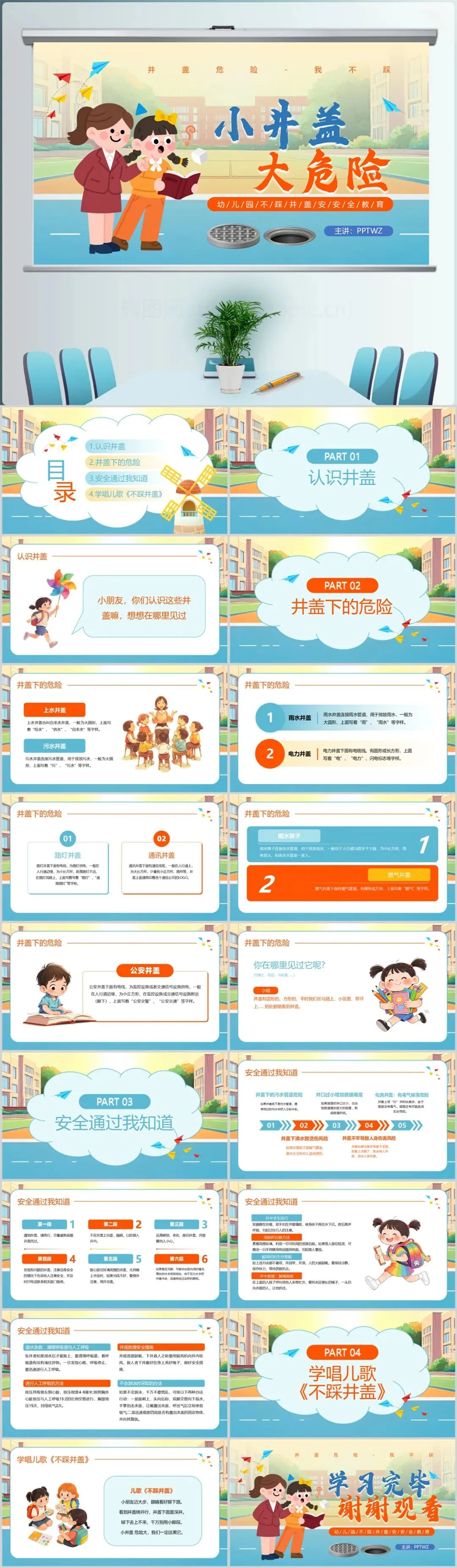 【安全教育PPT】卡通小井盖大危险不踩井盖安全教育主题班会