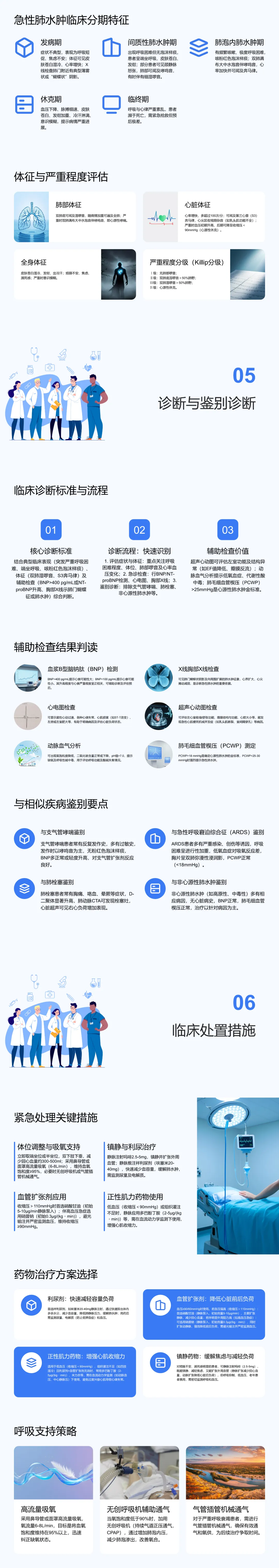 治疗原则:急性左心衰(急性心源性肺水肿)是危及生命的急症,抢救核心在于快速纠正缺氧、降低心脏前后负荷、增强心肌收缩力、去除诱因。