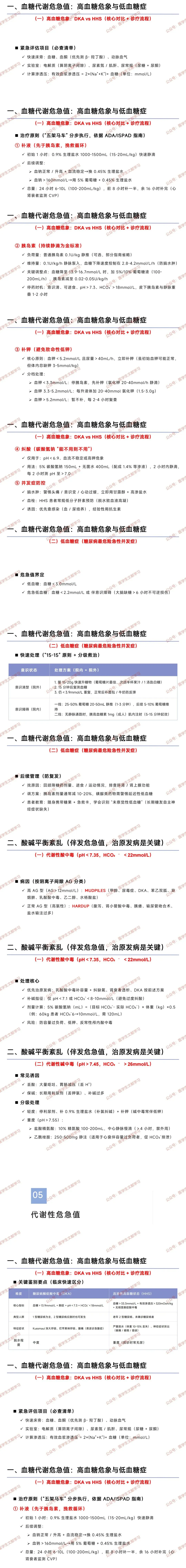 - 治疗原则:补液(先于胰岛素,按情况选液体)、胰岛素治疗(持续静滴,控制下降速度,适时调整)、补钾(按血钾水平处理)、纠酸(仅特定情况用碳酸氢钠)、防控并发症(警惕脑水肿等,排查感染)。