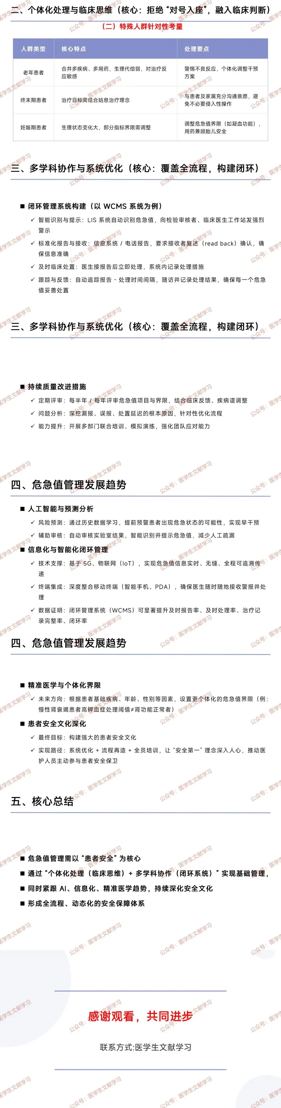 - 特殊人群:老年患者警惕不良反应,终末期患者结合姑息治疗,妊娠期患者调整界限与用药。