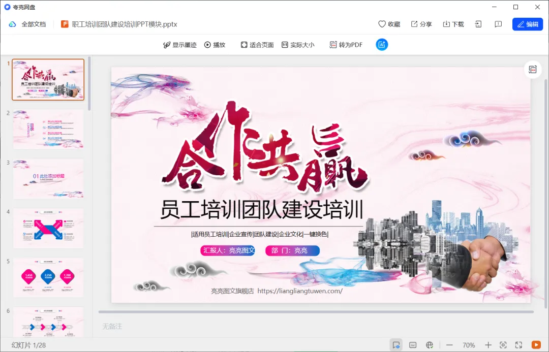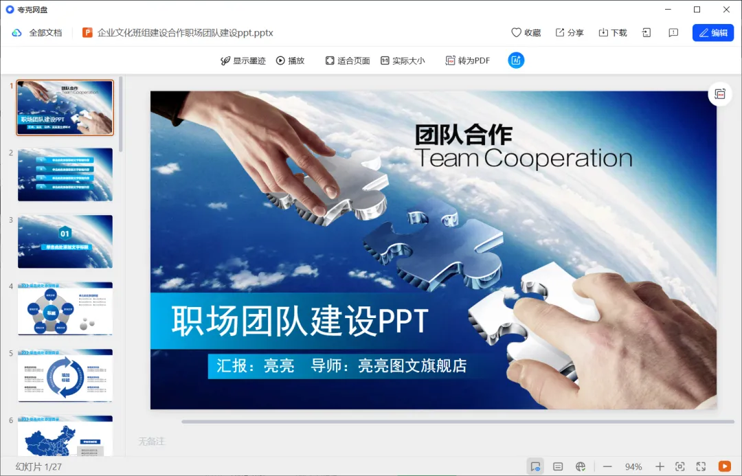 前面给大家分享的都是商务办公、工作总结、星空风格、动漫治愈系的PPT模板,今天给大家带来了团队合作系列的模板,小编觉得这个系列比较适合现在很多公司的工作环境,这次给大家分享了有20套,可以先收藏一波,需要的时候可以直接下载使用。后面小编会一直给大家分享各类有用的模板和资源,希望大家喜欢!!!!