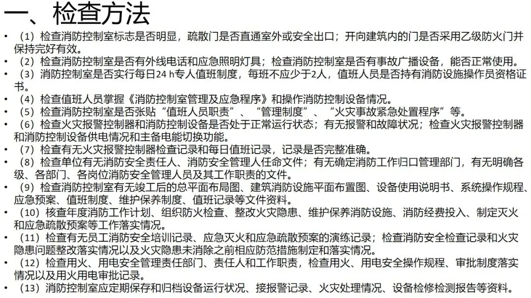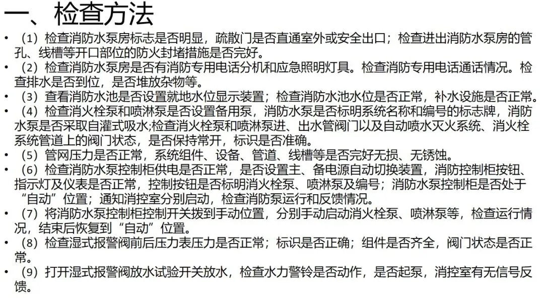 各部位作为消防系统关键组成,功能定位明确,消防控制室是系统 “大脑”,消防水泵房为 “心脏”,消防水箱保障初期火灾用水,共同构筑安全防护屏障。培训明确各部位检查方法,涵盖标识完整性、设备运行状态、人员资质、制度落实等维度。消防控制室需 24 小时专人值班,水泵房要确保阀门常开且标识清晰,配电室需设置挡鼠板与绝缘防护设施。同时指出常见隐患,包括报警主机故障、防火门不合规、设备控制模式错误等。资料为消防安全管理提供实操指引,强调通过定期检查、规范操作、隐患整改,保障消防设施在突发情况时有效运转,助力筑牢场所安全防线。