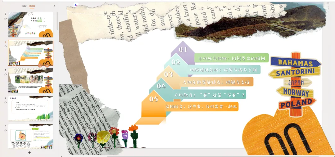 根据《3-6 岁儿童学习与发展指南》,结合大班幼儿的年龄特点,我们制定了以下五大领域的教育目标: