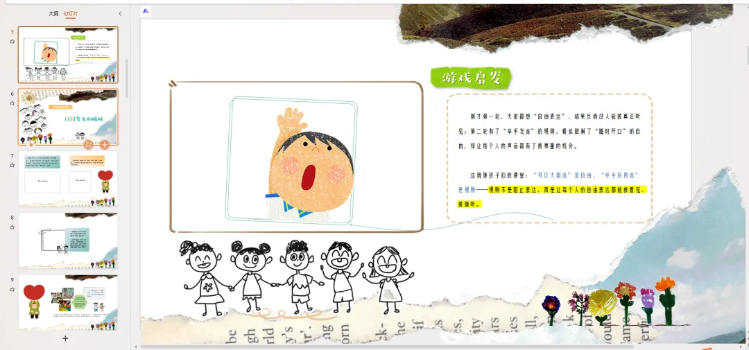 刚才第一轮,大家都想“自由表达”,结果反而没人能被真正听见;第二轮有了“举手发言”的规则,看似限制了“随时开口”的自由,却让每个人的声音都有了被尊重的机会。这就像孩子们的课堂:“可以大胆说”是自由,“举手后再说”是规则——规则不是阻止表达,而是让每个人的自由表达都能被看见、被倾听。