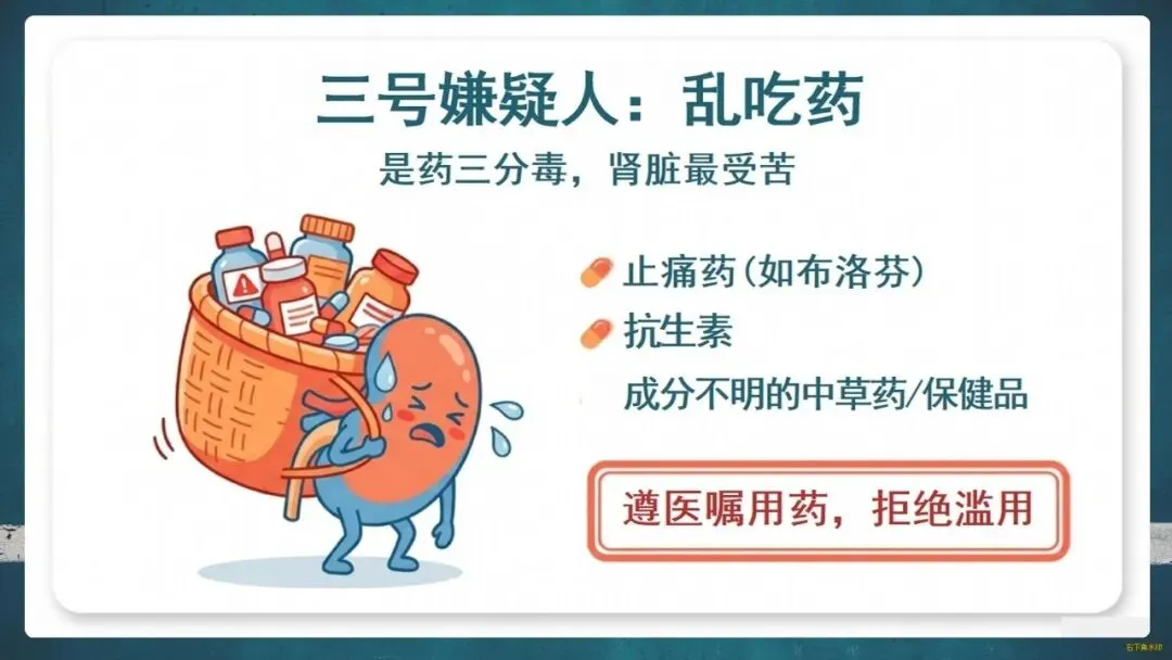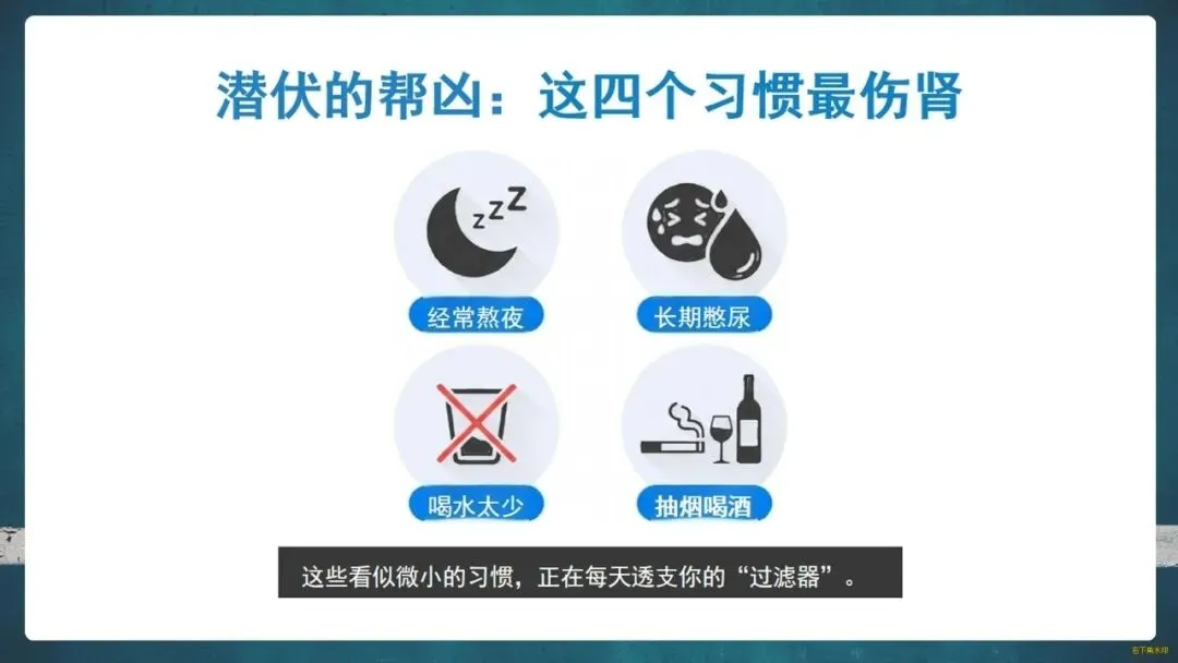 谁是伤害肾脏的“头号嫌疑人”?糖尿病、高血压、乱吃药以及熬夜、憋尿、少喝水、抽烟喝酒等不良习惯都在悄悄透支肾脏健康。特别是糖尿病和高血压患者,更是高危人群。