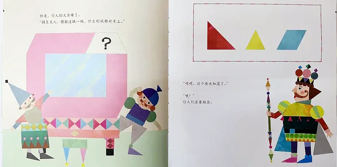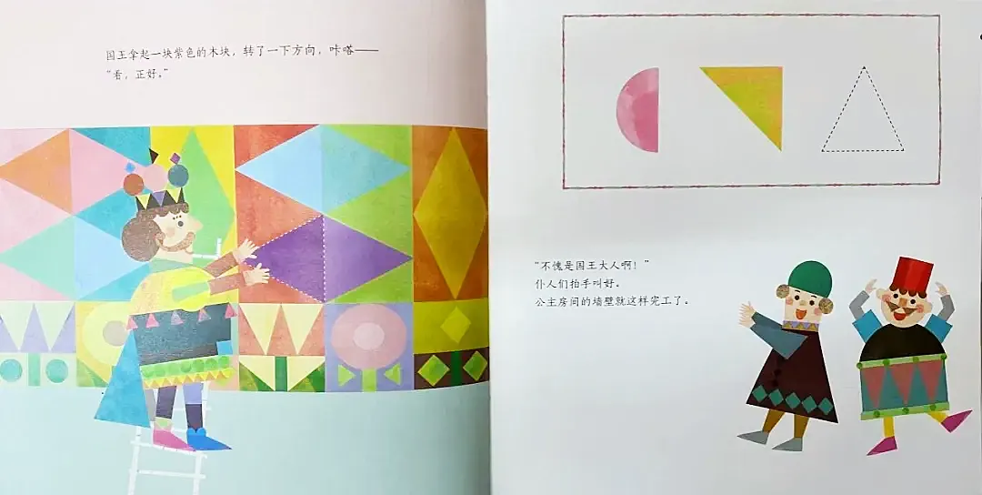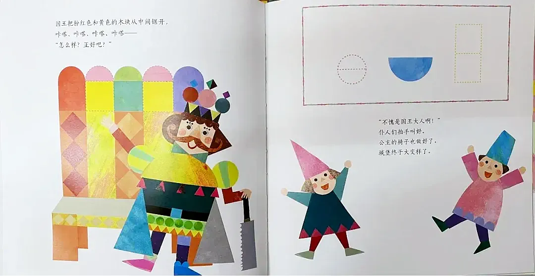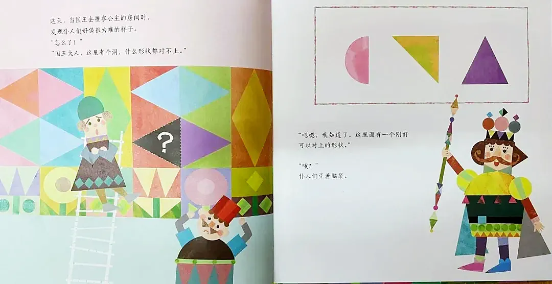 有一天,大臣慌慌张张地跑过来,原来,邻国的公主要来访,可是王国里却并没有适合公主居住的房间,于是国王下令把形状王国城堡大变样。