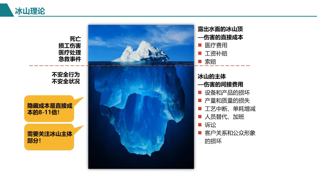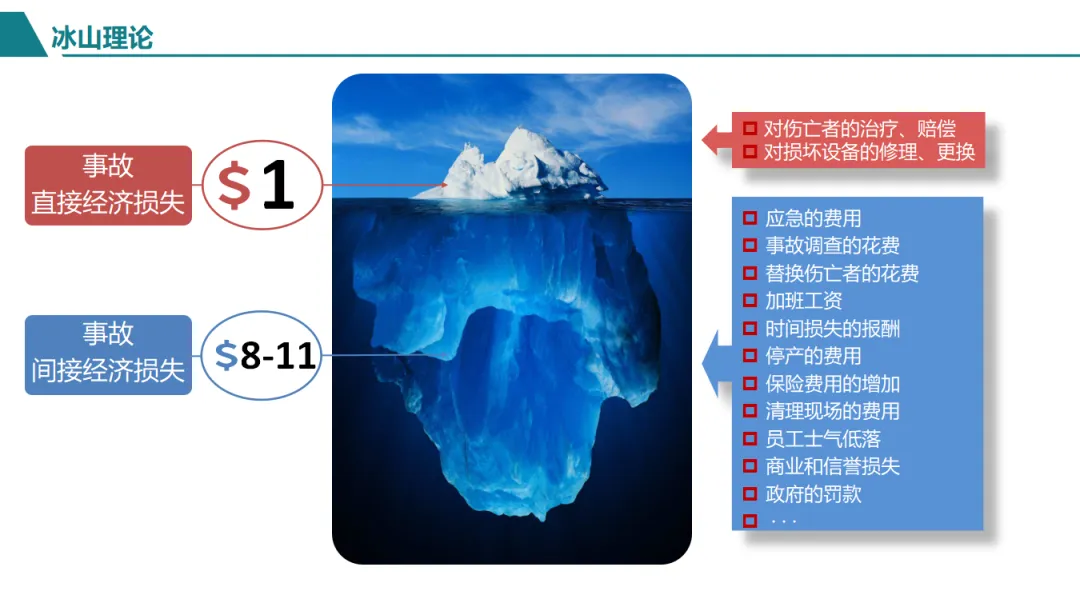 在安全管理中,事故的直接成本和间接成本就像这座冰山:
