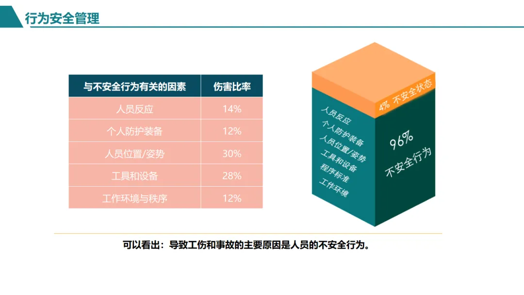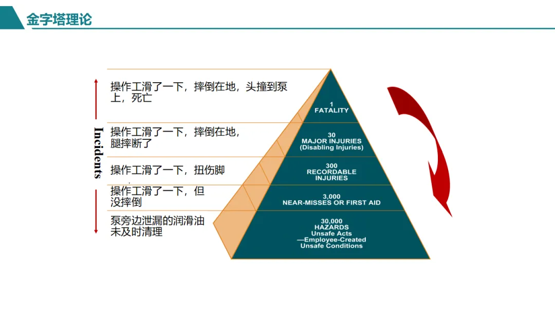 这个法则证明了事故是可以通过管理来预防的。如果我们能把金字塔底层的不安全行为和不安全状态削减一半,那么根据概率,顶层的重大事故也会相应减少。