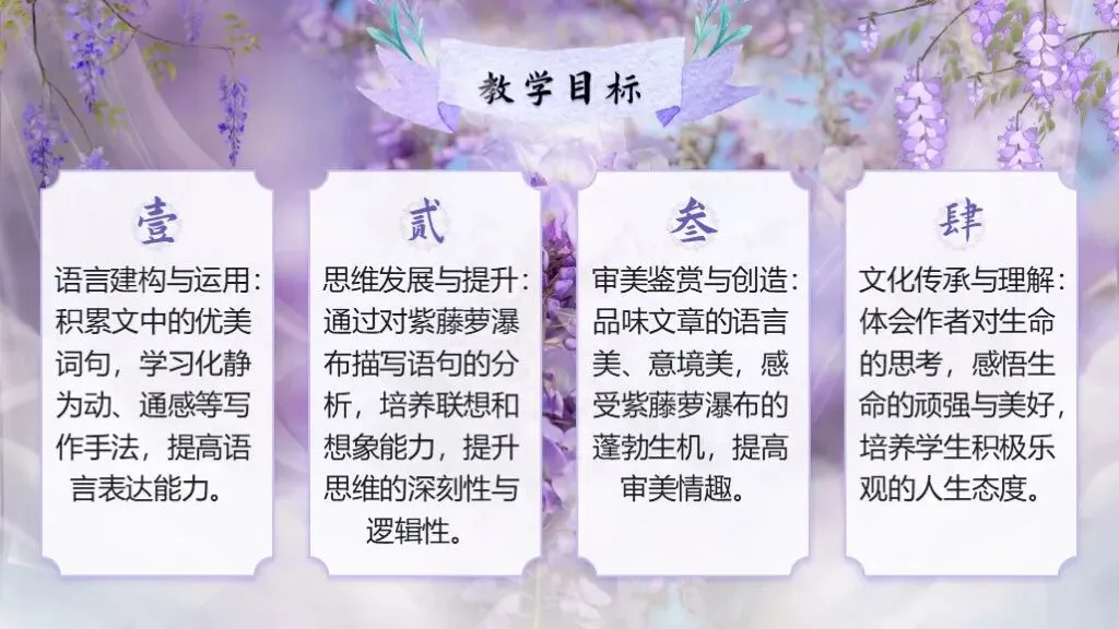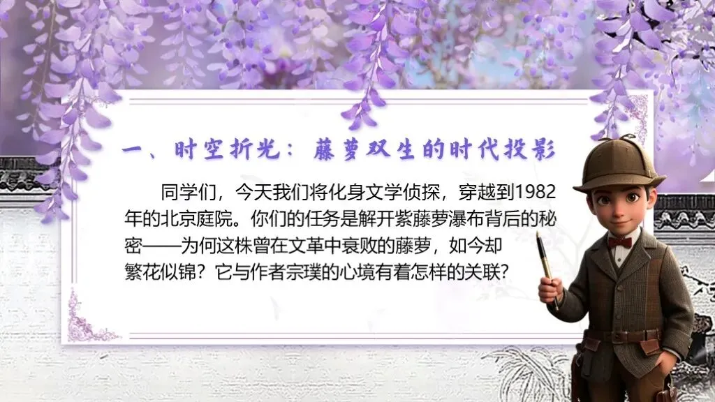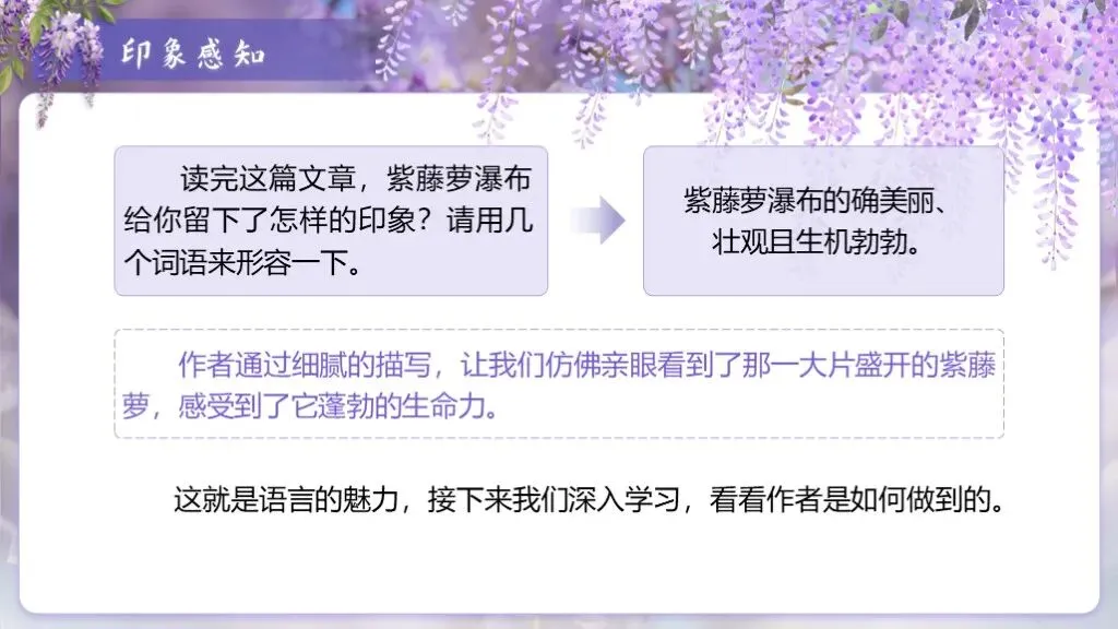 ��【免费教赛PPT模板】八下《紫藤萝瀑布》PPT展示(接定制)
