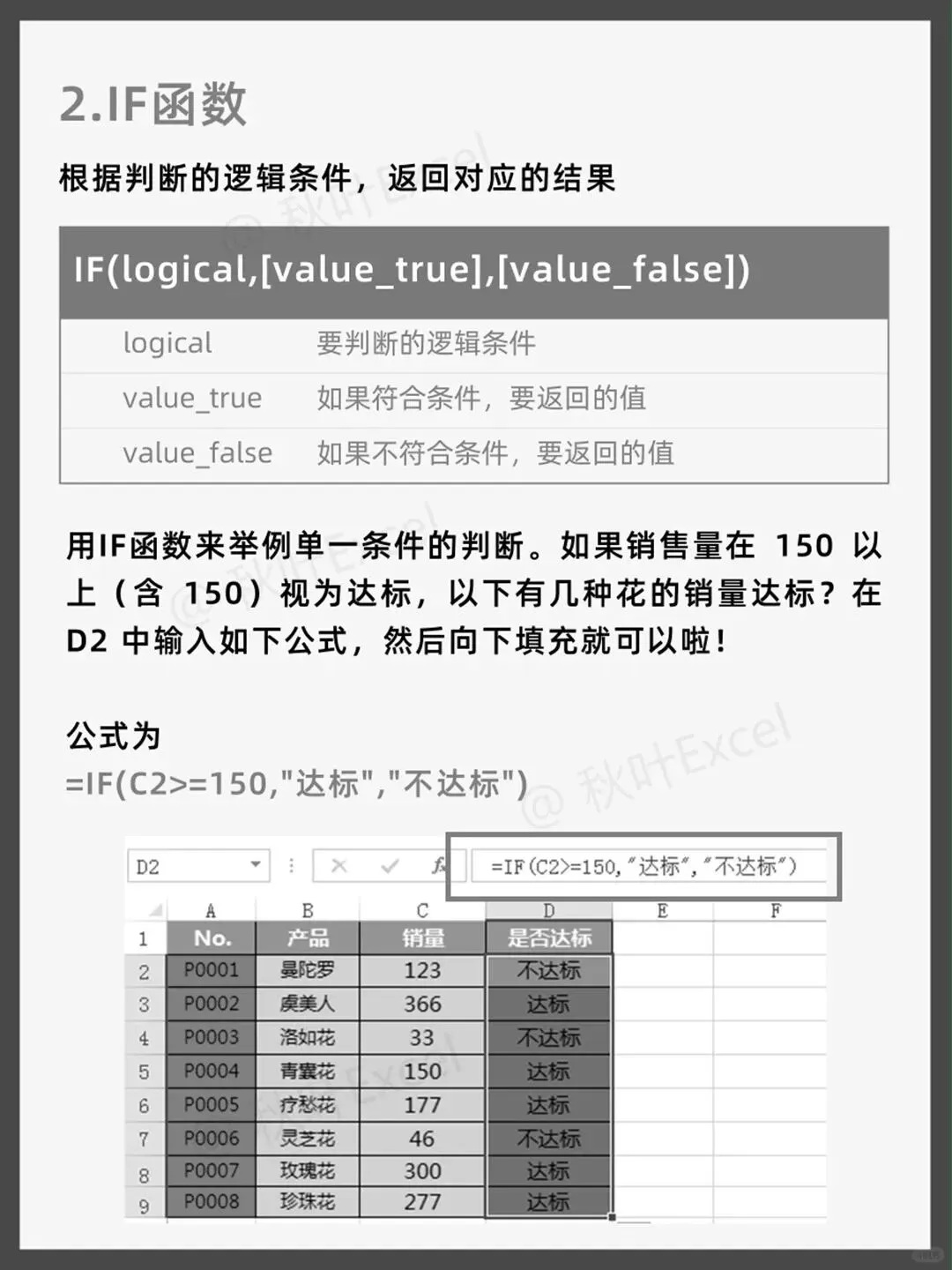 =IF(C2>=150, "达标", "不达标")