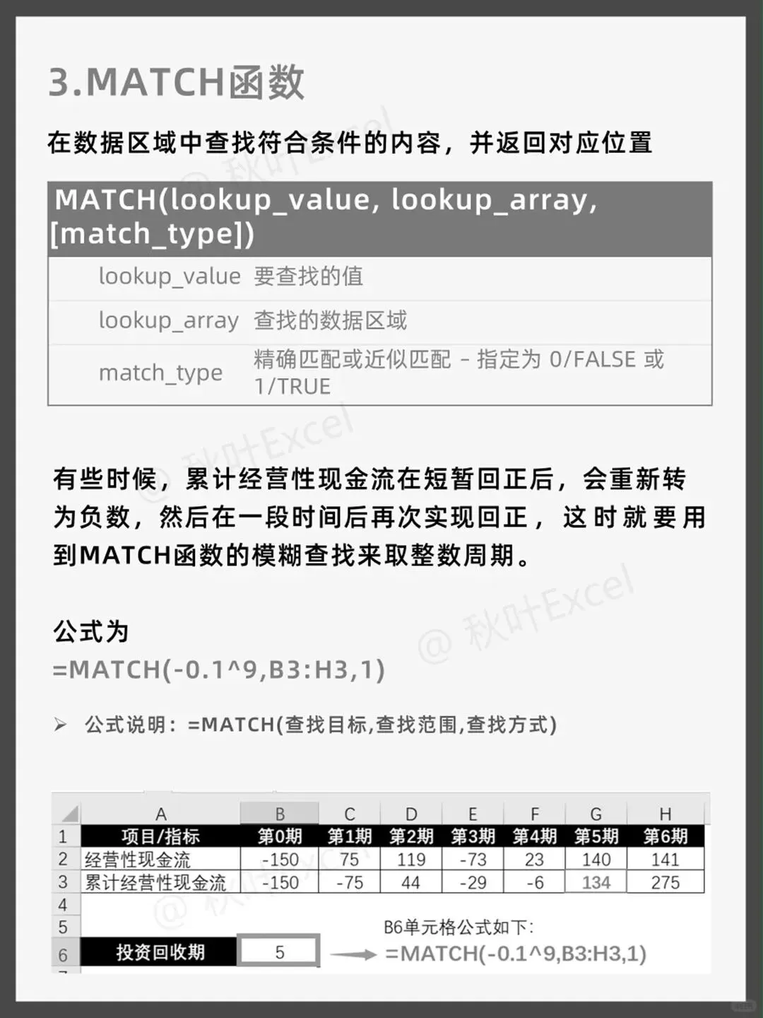 在累计经营性现金流数据行中,找到最后一个负数所在的位置,这里用-0.1^9(极小负数)配合近似匹配实现。