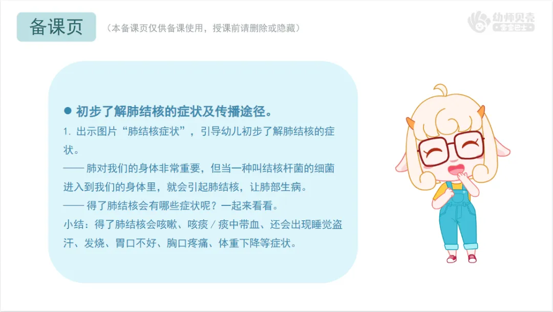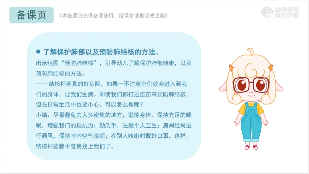 >幼儿园中大班-健康-《预防肺结核》PPT+教案+动画视频分享