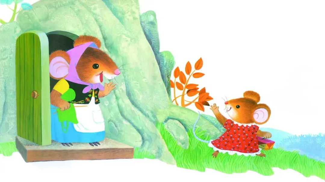鼠小妹要去看望外婆,鼠妈妈拿了一盒点心让她带去做礼物。