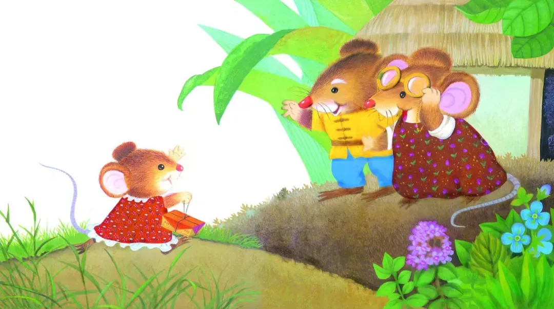 西瓜船漂呀漂,把鼠小妹送到了河对岸。鼠小妹来到外婆家,外公外婆真高兴啊!