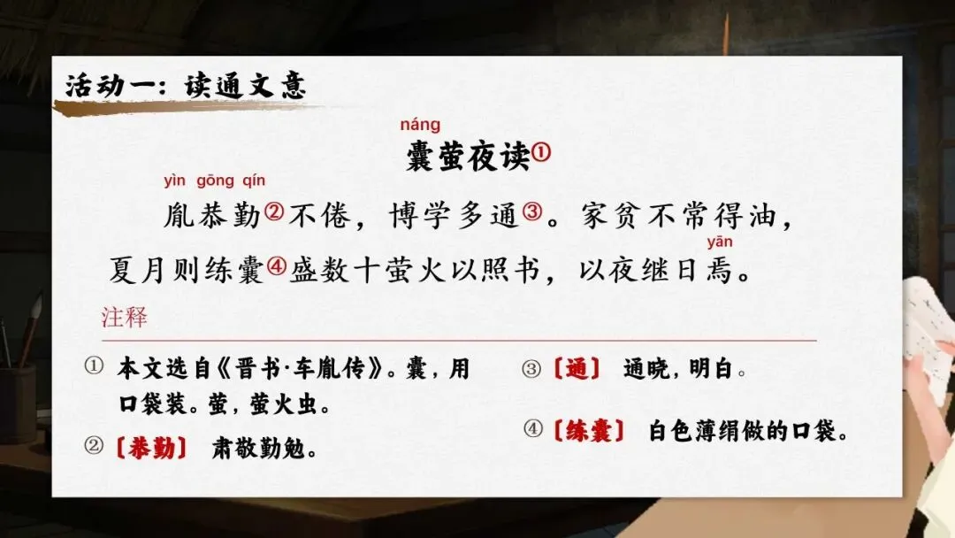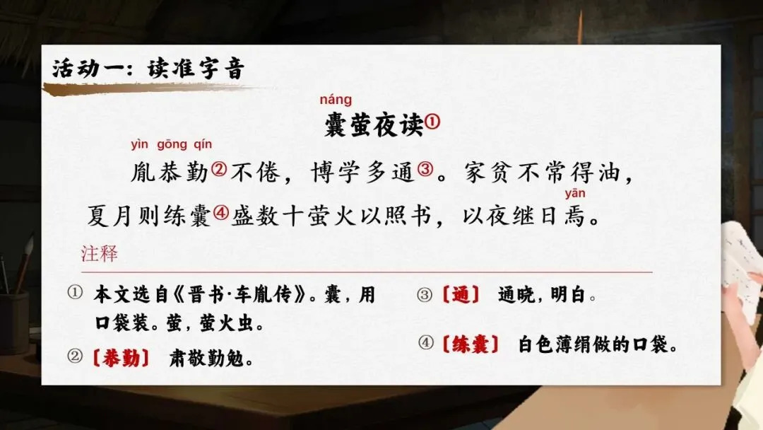 四下新版《囊萤夜读》:36页公开课PPT + 教学设计+逐字稿+板贴