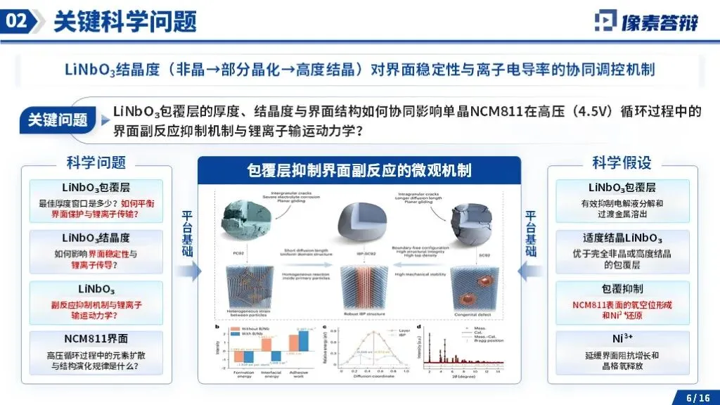 创新研究群体项目答辩PPT——LiNbO3包覆单晶NCM811的高压循环稳定性与界面副反应抑制机制(附源文件)